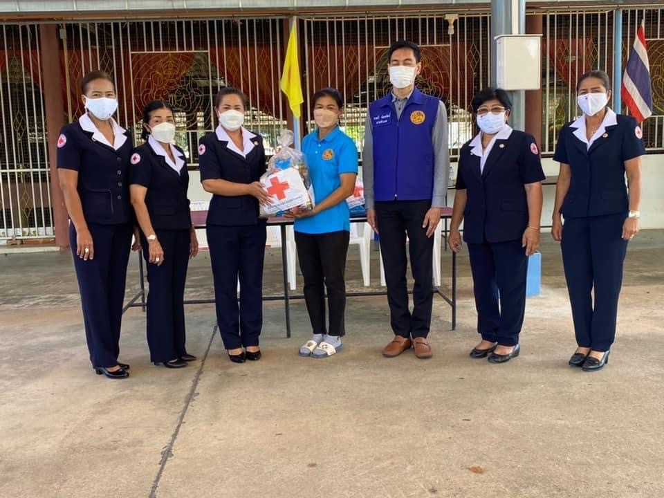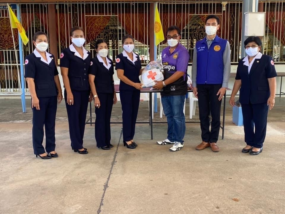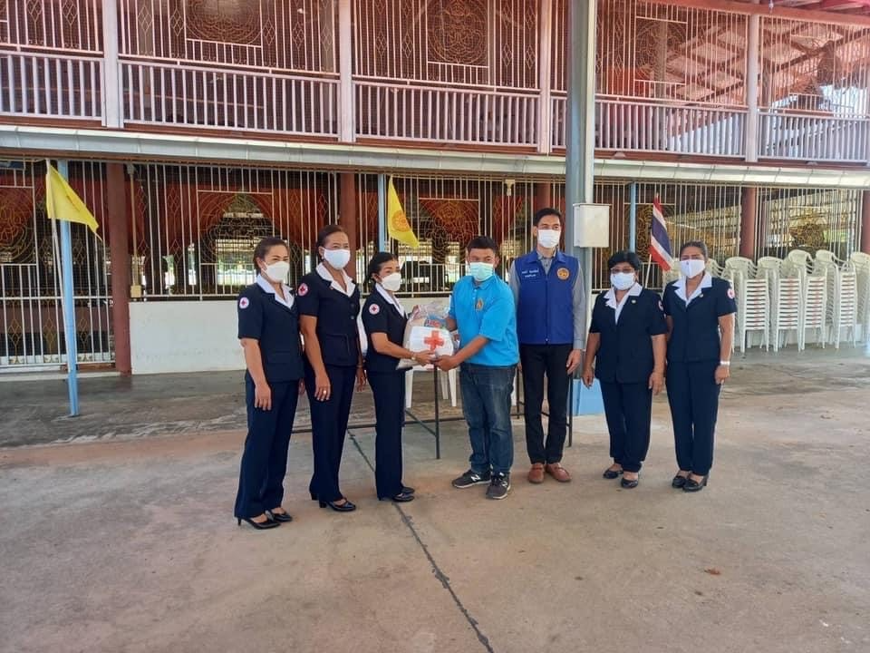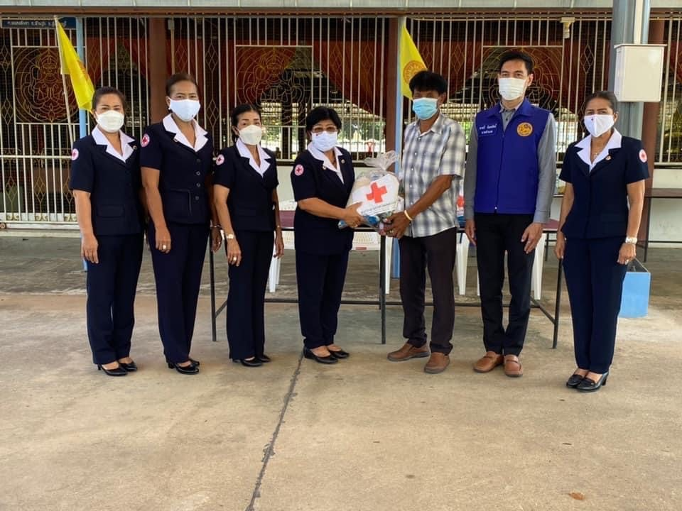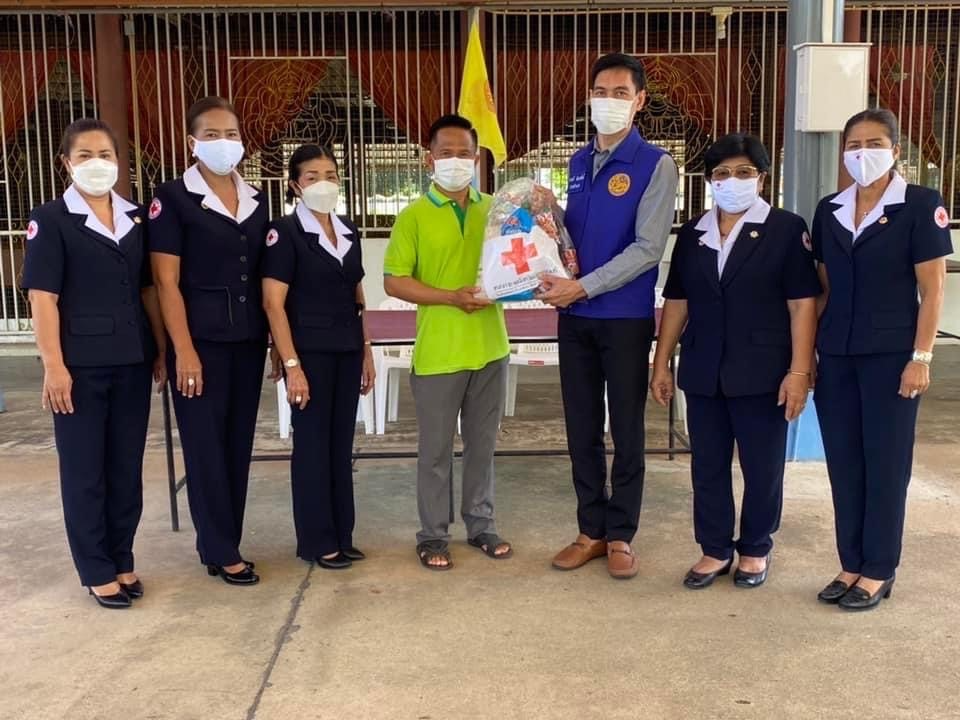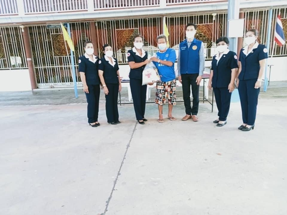 โดยเหล่ากาชาดจังหวัดสุพรรณบุรี มอบเครื่องอุปโภคบริโภค รายละ 1 ชุด ณ อ.สามชุก จ.สุพรรณบุรี