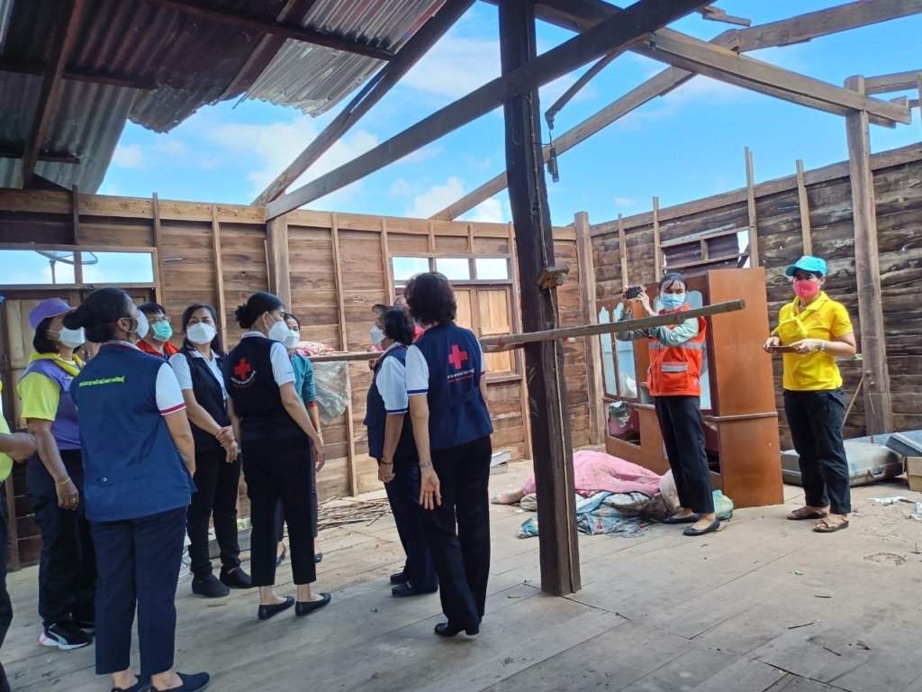 วันที่ 27 กรกฎาคม 2565 นายทรงพล ใจกริ่ม นายกเหล่ากาชาดจังหวัดกาฬสินธุ์ มอบหมายให้ นางศิริกร ณ ระนอง รองนายกเหล่ากาชาดจังหวัดกาฬสินธ์ุ พร้อมด้วยผู้ช่วยศาสตราจารย์สุมาลี ใจยสิทธิ์ ผู้ช่วยนายกเหล่ากาชาดจังหวัดกาฬสินธุ์ กรรมการและสมาชิกเหล่ากาชาดจังหวัดกาฬสินธุ์ ออกบรรเทาทุกข์และให้กำลังใจผู้ประสบวาตภัย ร่วมกับสำนักงานป้องกันและบรรเทาสาธารณภัยจังหวัดกาฬสินธ์ุ และอำเภอสหัสขันธ์ ในพื้นที่อำเภอสหัสขันธ์ จังหวัดกาฬสินธ์ุ รายนางพิสวาส สุมังคเศษ ณ บ้านเลขที่ 101 หมู่ที่ 1 ตำบลสหัสขันธ์ ซึ่งเมื่อวันอังคารที่ 26 กรกฎาคม 2565 เวลาประมาณ 15.30 น. ได้เกิดฝนตกหนัก มีลมแรง ทำให้พัดหลังคาบ้านเกิดความเสียหายทั้งหลัง โดยมีสมาชิกในครัวเรือนเป็นผู้ป่วยติดเตียง เพื่อเป็นการบรรเทาทุกข์แก่ประชาชนผู้ประสบวาตภัยในเบื้องต้น เหล่ากาชาดจังหวัดกาฬสินธุ์ ได้มอบเงินช่วยเหลือ จำนวน 3,000 บาท พร้อมเครื่องอุปโภค – บริโภค จำนวน 1 ชุด และผ้าห่ม 1 ผืน