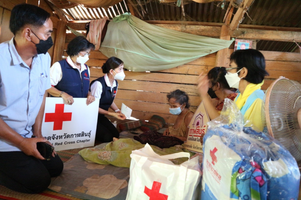 วันที่ 27 กรกฎาคม 2565 นายทรงพล ใจกริ่ม นายกเหล่ากาชาดจังหวัดกาฬสินธุ์ มอบหมายให้นางศิริกร ณ ระนอง รองนายกเหล่ากาชาดจังหวัดกาฬสินธ์ุ พร้อมด้วยผู้ช่วยศาสตราจารย์สุมาลี ใจยสิทธิ์ ผู้ช่วยนายกเหล่ากาชาดจังหวัดกาฬสินธ์ุ กรรมการและสมาชิกเหล่ากาชาดจังหวัดกาฬสินธุ์ ร่วมกับสมาคมแม่บ้านสาธารณสุข สาขาจังหวัดกาฬสินธ์ุ และอำเภอสามชัย ออกเยี่ยมผู้สูงอายุ ผู้ป่วยติดเตียง และผู้ยากไร้ ตามโครงการเยี่ยมผู้ป่วยติดเตียง ผู้พิการ ผู้ยากไร้ และผู้สูงอายุ 100 ปีขึ้นไป ประจำปีงบประมาณ พ.ศ.2565 ในพื้นที่อำเภอสามชัย จังหวัดกาฬสินธุ์ ดังนี้