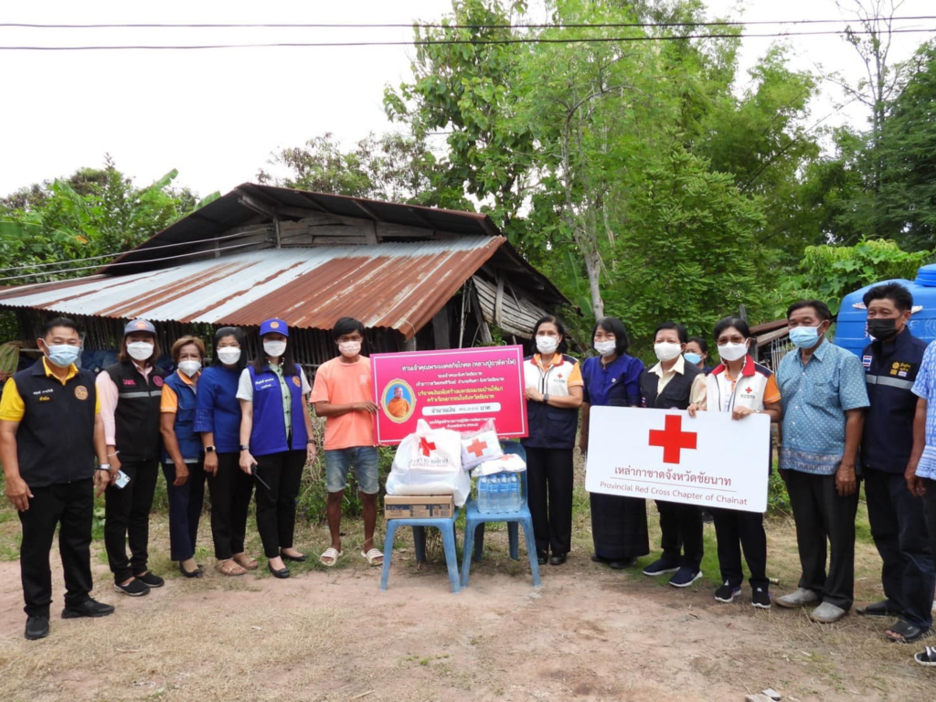 วันที่ 7 กรกฎาคม 2565 นาวาเอกหญิงอินทิรา ตันเจริญ นายกเหล่ากาชาดจังหวัดชัยนาท พร้อมด้วยคณะกรรมการเหล่ากาชาดจังหวัดชัยนาท ร่วมกับพัฒนาสังคมและความมั่นคงของมนุษย์จังหวัดชัยนาท บ้านพักเด็กและครอบครัวจังหวัดชัยนาท นายอำเภอเนินขาม และหน่วยงานที่เกี่ยวข้อง ลงพื้นที่เยี่ยมเยียนและให้กำลังใจนายสากล มาเอื้อ บ้านเลขที่ 61 หมู่ที่ 12 ตำบลสุขเดือนห้า อำเภอเนินขาม จังหวัดชัยนาท เป็นผู้ยากไร้ ฐานะยากจน ที่อยู่อาศัยไม่มั่นคง เหล่ากาชาดได้มอบถุงยังชีพ นมพร้อมดื่ม น้ำดื่ม และได้รับเงินสนับสนุนจากท่านเจ้าคุณพระมงคลกิจโกศล (หลวงปู่ฤาษีตาไฟ) รองเจ้าคณะจังหวัดชัยนาท/เจ้าอาวาสวัดเทพหิรัณย์ เพื่อนำไปสร้าง/ซ่อมแซมบ้าน จำนวน 70,000 บาท/เหล่ากาชาดจังหวัดชัยนาท