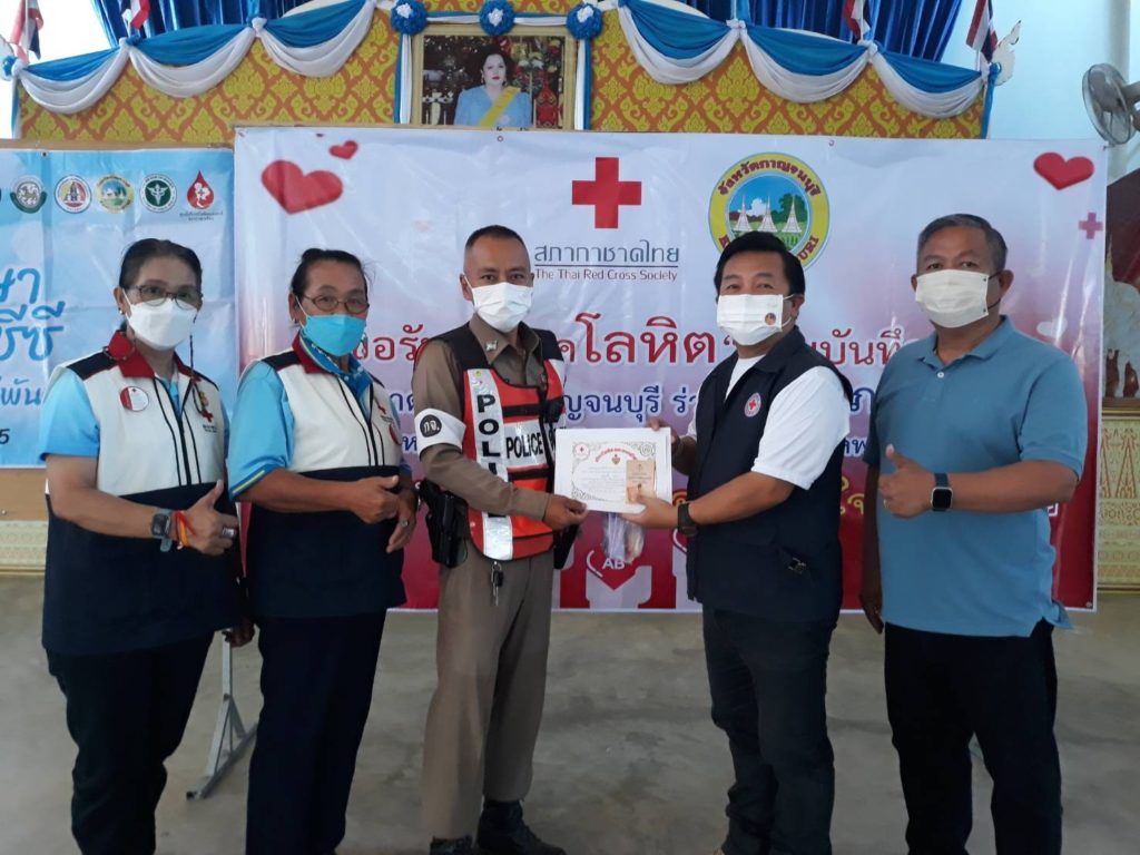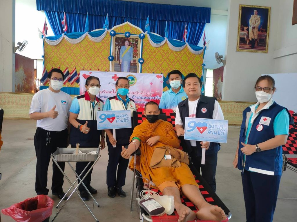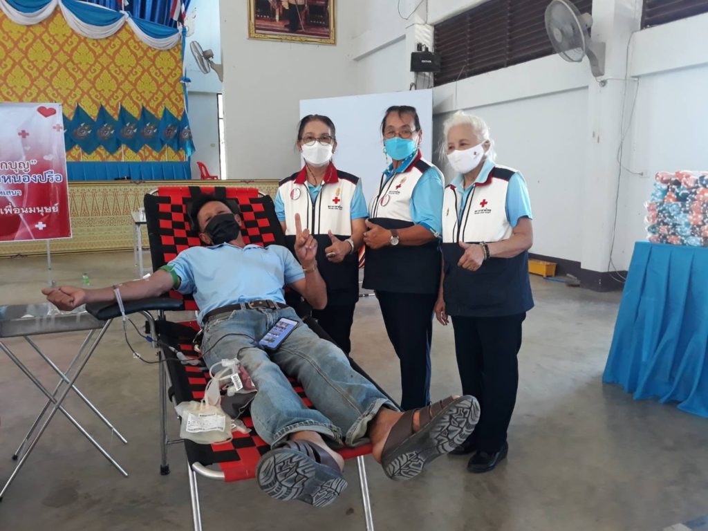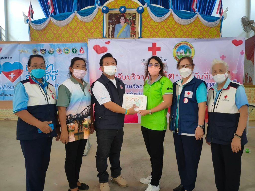 วันที่ 24 สิงหาคม 2565 นางรชยา ภูมิสวัสดิ์ นายกเหล่ากาชาดจังหวัดกาญจนบุรี มอบหมายสมาชิกเหล่ากาชาดจังหวัดกาญจนบุรี ร่วมตรวจเยี่ยมหน่วยรับบริจาคโลหิต ดวงตา และอวัยวะ และได้รับโลหิต จำนวน 95 ราย 33,250 ซีซี และ อวัยวะ จำนวน 3 ราย และดวงตา จำนวน