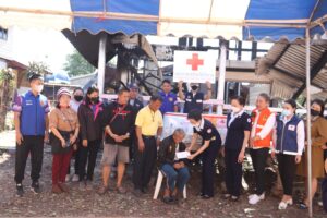 ในการนี้ เหล่ากาชาดจังหวัดบึงกาฬ ได้มอบเงินช่วยเหลือ รายละ 8,000 บาท พร้อมเครื่องอุปโภคบริโภคที่จำเป็นต่อการดำรงชีพ พัฒนาสังคมและความมั่นคงของมนุษย์จังหวัดบึงกาฬ มอบเงินช่วยเหลือ จำนวน 3,000 บาท พร้อมกันนี้ได้บูรณาการความช่วยเหลือ