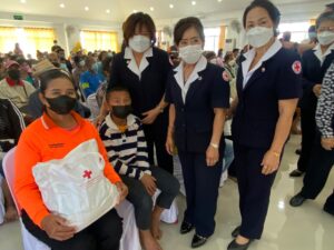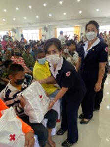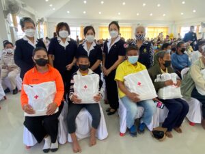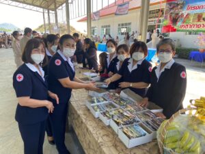 วันที่ 19 มกราคม 2565 รศ.ดร.พญ.เรวิกา ไชยโกมินทร์ นายกเหล่ากาชาดจังหวัด มอบหมายให้นางวิมลทิพย์ เวียงสิมมา รองนายกเหล่ากาชาดจังหวัดกาญจนบุรี พร้อมด้วย กรรมการ สมาขิกเหล่ากาชาดจังหวัดกาญจนบุรี ร่วมออกหน่วยโครงการจังหวัดเคลื่อนที่ บำบัดทุกข์ บำรุงสุข สร้างรอยยิ้มให้กับประชาชน ครั้งที่ 2 ประจำปี 2566 โดยมีนายชลัท ตะเพียนทอง นายอำเภอบ่อพลอย หัวหน้าส่วนราชการ ผู้นำชุมชนในท้องที่ ให้การต้อนรับ พร้อมรายงานสภาพปัญหาความเดือดร้อนและความต้องการในพื้นที่อำเภอบ่อพลอย โดยเหล่ากาชาดจังหวัดกาญจนบุรี ได้สนับสนุนเครื่องอุปโภค – บริโภค จำนวน 200 ชุด และแว่นสายตายาวผู้สูงอายุ จำนวน 129 อัน โดยมี ร้อยโท ทศพล ไชยโกมินทร์ ผู้ว่าราชการจังหวัดกาญจนบุรี เป็นประธานเปิดโครงการฯ ณ วัดเขาแดง หมู่ 6 ตำบลช่องด่าน อำเภอบ่อพลอย จังหวัดกาญจนบุรี