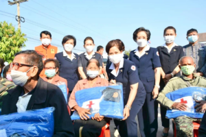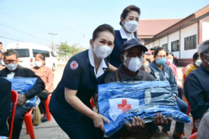 วันที่ 24 มกราคม 2566 นางวราภรณ์ เสริมภักดีกุล นายกเหล่ากาชาดจังหวัดเลย พร้อมด้วยนางกานต์สิรี เรณุมาศ รองนายกเหล่ากาชาดจังหวัดเลย นางเตือนใจ บุตรคุณ รองนายกเหล่ากาชาดจังหวัดเลย นางสาวรัตนาพร เทวะสัตย์ เหรัญญิกเหล่ากาชาดจังหวัดเลย กรรมการเหล่ากาชาดจังหวัดเลย ลงพื้นที่มอบผ้าห่มกันหนาว ถุงมือกันหนาว หมวกไหมพรม จำนวน อย่างละ 200 ชุด และเสื้อกันหนาว จำนวน 100 ตัว ให้กับราษฎรผู้ประสบภัยหนาวในพื้นที่อำเภอท่าลี่ จังหวัดเลย จำนวน 300 คน โดยได้รับการสนับสนุนจากสถานีกาชาดที่ 9 อุดรธานี สภากาชาดไทย เพื่อบรรเทาความเดือดร้อนให้กับราษฎร โดยร่วมกับนายพศิน นาชัยโชติ นายอำเภอท่าลี่ พร้อมด้วยผู้แทน ปภ.เลย ผู้แทน พมจ.เลย ตำรวจ ทหาร นายกองค์การบริหารส่วนตำบลหนองผือ กำนัน ผู้ใหญ่บ้าน ร่วมมอบฯในครั้งนี้