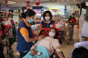 วันที่ 24 มกราคม 2566 นางกัญญา จุนถิระพงศ์ นายกเหล่ากาชาดจังหวัดบุรีรัมย์ พร้อมด้วยคณะกรรมการและสมาชิกเหล่ากาชาดจังหวัดบุรีรัมย์ ร่วมกับคลังเลือดโรงพยาบาลบุรีรัมย์ ออกหน่วยรับบริจาคโลหิต ดวงตา และอวัยวะ โครงการ “Plus 1 เพิ่มจำนวนครั้ง เพิ่มโลหิต เพิ่มชีวิต (Plus One Blood Donation More Blood More Lives)” ห้วงเดือนมกราคม-ธันวาคม 2566 ณ ห้างทวีกิจซุปเปอร์เซ็นเตอร์ (ประตู 3) ตำบลอิสาณ อำเภอเมืองบุรีรัมย์ จังหวัดบุรีรัมย์