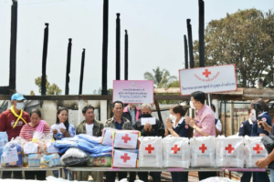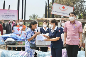 วันที่ 7 มีนาคม 2566 นายทวี เสริมภักดีกุล ผู้ว่าราชการจังหวัดเลย พร้อมด้วยนางวราภรณ์ เสริมภักดีกุล นายกเหล่ากาชาดจังหวัดเลย/ประธานแม่บ้านมหาดไทยจังหวัดเลย นางสาวกานต์สิรี เรณุมาศ รองนายกเหล่ากาชาดจังหวัดเลย นางเตือนใจ บุตรคุณ รองนายกเหล่ากาชาดจังหวัดเลย ผู้ช่วยนายกเหล่ากาชาด ที่ปรึกษาเหล่ากาชาด กรรมการเหล่ากาชาด ร่วมกับนายปรเมศวร์ ยศปัญญา หัวหน้าสำนักงานป้องกันและบรรเทาสาธารณภัยจังหวัดเลย นางบุญรดา ทัพมงคล พัฒนาสังคมและความมั่นคงของมนุษย์จังหวัดเลย นายประชา แสนกลาง นายอำเภอวังสะพุง สภ.วังสะพุง แม่บ้านมหาดไทยจังหวัดเลย และผู้นำท้องถิ่น ลงพื้นที่ให้กำลังใจผู้ประสบอัคคีภัย เกิดเหตุไฟไหม้บ้านเรือนประชาชนลุกลามหลายหลัง ในพื้นที่บ้านโพนทอง หมู่ 9 ต.ทรายขาว อ.วังสะพุง จ.เลย จำนวน 5 ราย ดังต่อไปนี้