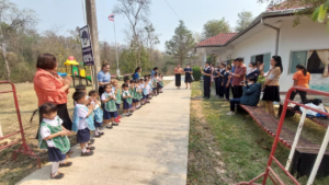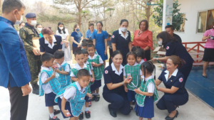 วันที่ 2 มีนาคม 2566 นางวราภรณ์ เสริมภักดีกุล นายกเหล่ากาชาดจังหวัดเลย/ประธานแม่บ้านมหาดไทยจังหวัดเลย มอบหมายนางจารุชา พรมภักดี ภริยานายอำเภอด่านซ้าย/ที่ปรึกษาเหล่ากาชาดจังหวัดเลย กรรมการเหล่ากาชาด สมาชิกเหล่ากาชาด ออกเยี่ยมและประชาสัมพันธ์ส่งเสริมการสร้างสุขอนามัยให้แก่เด็กและแม่เติบโตอย่างถูกต้องตามเกณฑ์มาตรฐานสุขลักษณะ ตามนโยบายสมาคมแม่บ้านมหาดไทย น้อมนำแนวพระราชดำริสมเด็จพระกนิษฐาธิราชเจ้า กรมสมเด็จพระเทพรัตนราชสุดาฯ สยามบรมราชกุมารี ส่งเสริมการสร้างสุขอนามัยให้แก่เด็กและแม่เติบโตอย่างถูกต้องตามเกณฑ์มาตรฐานสุขลักษณะ ศูนย์พัฒนาเด็กเล็กจัดการเรียนการสอนและกิจกรรมที่มีมาตรฐานมุ่งหวังให้เด็กเล็กได้รับการพัฒนาทั้งด้านร่างกาย อารมณ์ สังคม และสติปัญญสเหมาะสมตามวัย มีความพร้อมที่จะเข้าศึกษาต่อในระดับการศึกษาขั้นต่อไป สามารถเติบโตเป็นทรัพยากรมนุษย์ที่มีคุณค่าของประเทศชาติได้อย่างมีประสิทธิภาพ โดยมีนายนที พรมภักดี นายอำเภอด่านซ้าย ปลัดอวุโสอำเภอด่านซ้าย นายกเทศมนตรีเทศบาลตำบลด่านซ้าย ร่วมตรวจเยี่ยมในครั้งนี้ด้วย ณ ศูนย์พัฒนาเด็กเล็กเทศบาลตำบลด่านซ้าย จำนวน 2 แห่ง อำเภอด่านซ้าย จังหวัดเลย