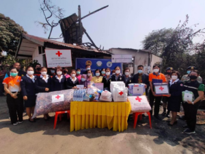 วันที่ 2 มีนาคม 2566 นางวราภรณ์ เสริมภักดีกุล นายกเหล่ากาชาดจังหวัดเลย ประธานแม่บ้านมหาดไทยจังหวัดเลย มอบหมายนางสาวกานต์สิรี เรณุมาศ รองนายกเหล่ากาชาดจังหวัดเลย นางเตือนใจ บุตรคุณ รองนายกเหล่ากาชาดจังหวัดเลย นางสาวรัตนาพร เทวะสัตย์ เหรัญญิกเหล่ากาชาดจังหวัดเลย ผู้ช่วยนายกเหล่ากาชาด กรรมการเหล่ากาชาด ร่วมกับหน่วยงาน ปภ. เลย พมจ.เลย อำเภอเมืองเลย เทศบาลตำบลนาอาน ชมรมแม่บ้านมหาดไทยจังหวัดเลย ลงพื้นที่ให้กำลังใจผู้ประสบอัคคีภัย รายนายจักรี ยั้งหลัง อยู่บ้านเลขที่ 552 หมู่ที่ 9 ซอยอินคำดี ตำบลนาอาน อำเภอเมืองเลย จังหวัดเลย เกิดเหตุเพลิงไหม้ บ้านพักอาศัยและทรัพย์สินได้รับความเสียหายทั้งหลัง