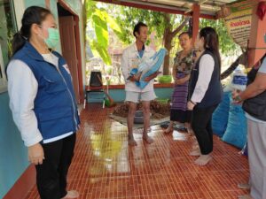 วันที่ 12 มีนาคม 256 นายสมชาย ไตรทิพย์ชาติสกุล นายอำเภอแม่สอด นายกกิ่งกาชาดอำเภอแม่สอด มอบหมายให้ สมาชิกกิ่งกาชาดอำเภอแม่สอด ผู้ใหญ่บ้าน ผู้ช่วยผู้ใหญ่บ้าน อสม. ลงพื้นที่เยี่ยมประชาชนและให้การช่วยเหลือแก่ผู้ยากไร้ ผู้พิการ ผู้สูงอายุ ผู้ป่วยติดเตียง และผู้ด้อยโอกาส พร้อมมอบเครื่องอุปโภค บริโภค ข้าวสาร หน้ากากอนามัย ผ้าห่ม เสื้อกันหนาว เจลแอลกอฮอล์ และยาสามัญประจำบ้าน จำนวน 1 ราย ได้แก่
