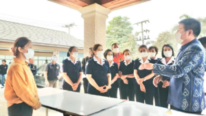 วันที่ 10 มีนาคม 2566 นางวราภรณ์ เสริมภักดีกุล นายกเหล่ากาชาดจังหวัดเลย ประธานแม่บ้านมหาดไทยจังหวัดเลย พร้อมด้วยนางสาวกานต์สิรี เรณุมาศ รองนายกเหล่ากาชาดจังหวัดเลย นางเตือนใจ บุตรคุณ รองนายกเหล่ากาชาดจังหวัดเลย ที่ปรึกษาเหล่ากาชาด กรรมการเหล่ากาชาด ร่วมกับ นายพศิน นาชัยโชติ นายอำเภอท่าลี่ ผู้แทน ปภ.เลย ผู้แทน พมจ.เลย นายกอบต.หนองผือ กำนัน ผู้ใหญ่บ้าน ลงพื้นที่ให้กำลังใจผู้ประสบอัคคีภัย เกิดเหตุไฟไหม้บ้านเรือนประชาชนได้รับความเสียหายบางส่วน รายนางวริยา สุวรรณอาสา อยู่บ้านเลขที่ 202 ม. 7 ตำบลหนองผือ อำเภอท่าลี่ จังหวัดเลย ในการนี้ เหล่ากาชาดจังหวัดเลย มอบเงินช่วยเหลือเบื้องต้น จำนวน 5,000 บาท พร้อมถุงอุปโภคบริโภค ผ้าห่ม ให้กับผู้ประสบอัคคีภัยดังกล่าว