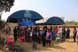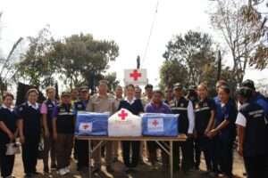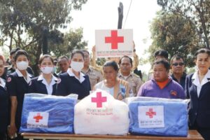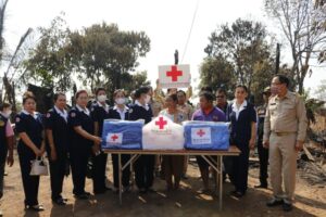 เวลาประมาณ 13.00 น. ในการนี้เหล่ากาชาดจังหวัดนครนพมมอบเงินและเครื่องอุปโภคบริโภคช่วยเหลือ รวมมูลค่า 10,000 บาท
