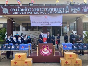 วันที่ 6 กุมภาพันธ์ 2566 รศ.ดร.พญ.เรวิกา ไชยโกมินทร์ นายกเหล่ากาชาดจังหวัดกาญจนบุรี พร้อมด้วยคณะกรรมการ สมาชิกเหล่ากาชาดจังหวัดกาญจนบุรี เลขานุการกิ่งกาชาดอำเภอทองผาภูมิ กรรมการ สมาชิกกิ่งกาชาดอำเภอทองผาภูมิ ร่วมกับสำนักงานบรรเทาทุกข์และประชานามัยพิทักษ์ นำโดย พลโท นายแพทย์อำนาจ บาลี ผู้อำนวยการสำนักงานบรรเทาทุกข์และประชานามัยพิทักษ์ สภากาชาดไทย เป็นประธานในพิธีมอบรถยนต์ขับเคลื่อนสี่ล้อ ให้แก่โรงเรียนตำรวจตระเวนชายแดนบ้านปิล็อกคี่ จังหวัดกาญจนบุรีสำหรับใช้รับส่งนักเรียนและครูในพื้นที่ เนื่องจากรถที่มีอยู่ มีสภาพเก่าและไม่เพียงพอต่อการใช้งาน และเหล่ากาชาดจังหวัดกาญจนบุรีได้สนับสนุนถุงยังชีพเพื่อการศึกษา ในการนี้ พันตำรวจตรีไพศาล ทบธรรม ผู้บังคับกองร้อยตำรวจตระเวนชายแดนที่ 135 เป็นผู้รับมอบ ณ กองร้อยตชด.ที่ 135 ตำบลปิล็อก อำเภอทองผาภูมิ จังหวัดกาญจนบุรี