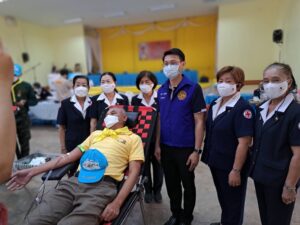 วันที่ 7 กุมภาพันธ์ 2566 รศ.ดร.พญ.เรวิกา ไชยโกมินทร์ นายกเหล่ากาชาดจังหวัดกาญจนบุรี มอบหมายกรรมการ ที่ปรึกษา และสมาชิกเหล่ากาชาดจังหวัดกาญจนบุรี ลงพื้นที่ตรวจเยี่ยมหน่วยรับบริจาคโลหิต ดวงตา และอวัยวะ และได้รับโลหิต จำนวน 58 ราย 20, 300 ซีซี ดวงตา จำนวน 3 ราย และอวัยวะ จำนวน 3 ราย ณ ที่ว่าการอำเภอทองผาภูมิ จังหวัดกาญจนบุรี