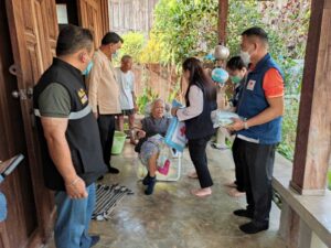 วันที่ 5 มีนาคม 2566 นายสมชาย ไตรทิพย์ชาติสกุล นายอำเภอแม่สอด นายกกิ่งกาชาดอำเภอแม่สอด มอบหมายให้สมาชิกกิ่งกาชาดอำเภอแม่สอด ผู้ใหญ่บ้าน ผู้ช่วยผู้ใหญ่บ้าน ชรบ. ลงพื้นที่เยี่ยมประชาชนและให้การช่วยเหลือแก่ผู้ยากไร้ ผู้พิการ ผู้สูงอายุ ผู้ป่วยติดเตียง และผู้ด้อยโอกาส พร้อมมอบเครื่องอุปโภค บริโภค ข้าวสาร หน้ากากอนามัย ผ้าห่ม เสื้อกันหนาว เจลแอลกอฮอล์ และยาสามัญประจำบ้าน จำนวน 1 ราย ได้แก่