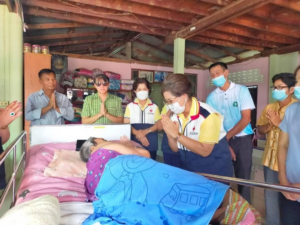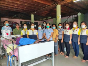 วันที่ 31 มีนาคม 2566 นางวราภรณ์ เสริมภักดีกุล นายกเหล่ากาชาดจังหวัดเลย ประธานแม่บ้านมหาดไทยจังหวัดเลย พร้อมด้วยนางเตือนใจ บุตรคุณ รองนายกเหล่ากาชาดจังหวัดเลย นางสาวรัตนาพร เทวะสัตย์ เหรัญญิกเหล่ากาชาดจังหวัดเลย ผู้ช่วยนายกเหล่ากาชาด ที่ปรึกษาเหล่ากาชาด กรรมการเหล่ากาชาด ร่วมกับพมจ.เลย โรงพยาบาลส่งเสริมสุขภาพตำบลนาอาน ออกเยี่ยมให้กำลังใจกลุ่มเปาะบาง ผู้ป่วยติดเตียง รายนางก้อน สิงห์มณี อายุ 90 ปี ป่วยติดเตียง อยู่บ้านเลขที่ 75 ม.4 บ้านฟากนา ต.นาอาน อ.เมืองเลย จ.เลย ในการนี้เหล่ากาชาดจังหวัดเลย มอบถุงเครื่องอุปโภคบริโภค ให้กับผู้ป่วยรายดังกล่าว
