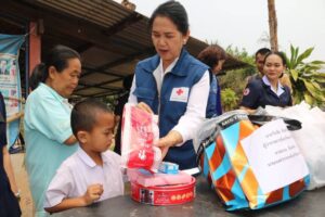 วันที่ 29 มีนาคม 2566 นางสงวน จันทร์พร นายกเหล่ากาชาดจังหวัดนครพนม พร้อมด้วย นางศุทธิกานต์ วงศ์ถิตจิรกาล รองนายกเหล่ากาชาดจังหวัดนครพนม กรรมการและสมาชิกเหล่ากาชาดจังหวัดนครพนม ลงพื้นที่เยี่ยมและให้การช่วยเหลือแก่ผู้ยากไร้ในพื้นที่อำเภอนาแก แก่ นาง รัตศรี หารธงไชย อายุ 62 ปี บ้านเลขที่ 62 หมู่ที่ 5 ตำบลหน่องบ่อ อำเภอนาแก จังหวัดนครพนม ผู้ยากไร้ เลี้ยงหลานวัย 5 ขวบ และ 7เดือน อยู่กับสามีเป็นผู้พิการทางความเคลื่อนไหว เบื้องต้นเหล่ากาชาดจังหวัดนครพนมได้มอบเงินช่วยเหลือ 2,000 บาท พร้อมเครื่องอุปโภคบริโภคมูลค่า 2,000 บาท