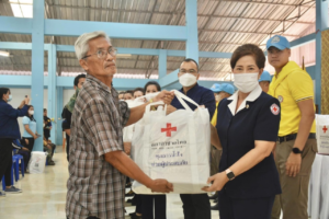 วันที่ 7 เมษายน 2566 นางวราภรณ์ เสริมภักดีกุล นายกเหล่ากาชาดจังหวัดเลย / ประธานแม่บ้านมหาดไทยจังหวัดเลย พร้อมด้วยนางสาวกานต์สิรี เรณุมาศ นางเตือนใจ บุตรคุณ รองนายกเหล่ากาชาดจังหวัดเลย เหรัญญิกเหล่ากาชาด ผู้ช่วยนายกเหล่ากาชาด ที่ปรึกษาเหล่ากาชาด กรรมการเหล่ากาชาด ร่วมกับนายกฤษฎา โพธิ์ชัย นายอำเภอปากชม ผู้แทน ปภ.เลย ผู้แทน พมจ. เลย สภ.เชียงกลม สาธารณสุขอำเภอปากชม ธกส.สาขาเชียงกลม ทต.เชียงกลม รพ.สต.เชียงกลม อบต. ชมเจริญ กำนัน ผู้ใหญ่บ้าน ลงพื้นที่เยี่ยมให้กำลังใจผู้ประสบวาตภัย พร้อมมอบชุดธารน้ำใจ สภากาชาดไทย เพื่อช่วยเหลือผู้ประสบวาตภัยในพื้นที่อำเภอปากชม จังหวัดเลย ได้แก่ ต.ชมเจริญ 53 ครัวเรือน ต.เชียงกลม 71 ครัวเรือน รวมผู้ประสบภัยทั้งสิ้น 124 ครัวเรือน โดยมอบชุดธารน้ำใจ สภากาชาดไทย เพื่อช่วยเหลือผู้ประสบวาตภัย 124 ชุด ตามที่มีการแจ้งภัยพิบัติ ผ่านทางแอปพลิเคชั่น “พ้นภัย” ได้รับการสนับสนุนจาก สำนักงานบรรเทาทุกข์และประชานามัยพิทักษ์ สภากาชาดไทย ณ หอประชุมเทศบาลตำบลเชียงกลม อำเภอปากชม จังหวัดเลย