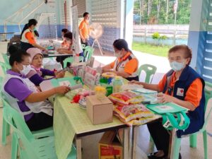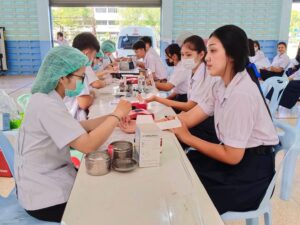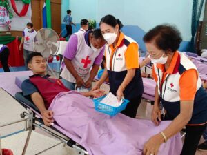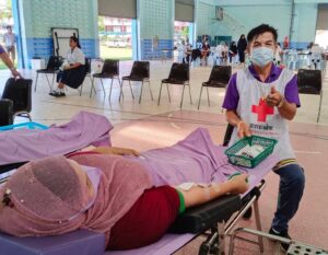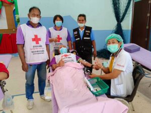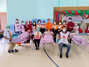 วันที่ 26 มกราคม 2566 นางละมัย เจริญโสภา นายกเหล่ากาชาดจังหวัดตรัง มอบหมายนางมินตรา อรทัย รองนายกเหล่ากาชาดจังหวัดตรัง นางจิรัฐติกาล สังข์สุขพร้อมด้วยคณะกรรมการเหล่ากาชาด สมาชิก เจ้าหน้าที่ และจิตอาสาสภากาชาดไทย ร่วมกับธนาคารเลือดโรงพยาบาลตรัง ออกหน่วยรับบริจาคโลหิต ดวงตา และอวัยวะ ณ โรงเรียนปะเหลียนผดุงศิษย์ อำเภอปะเหลียน จังหวัดตรัง โดยมีนายนิติพงษ์ ลีละสกุลมีเกียรติ ผู้อำนวยการโรงปะเหลียนผดุงศิษย์ นำบุคคลากรร่วมบริจาคโลหิตด้วยสำหรับวันนี้ มีผู้บริจาคทั้งหมด 68 ราย ได้โลหิต 39 ยูนิต คิดเป็นปริมาณ 15,600 ซีซี. มีผู้แสดงความจำนงบริจาคดวงตา จำนวน 10 ราย และผู้แสดงความจำนงบริจาคอวัยวะ 10 ราย มีผู้รับเข็มรับระลึกรับบริจาคโลหิต 16 ครั้ง 1 ราย พร้อมมอบหน้ากากอนามัย 39 ชิ้น