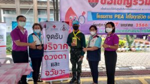 วันที่ 27 มกราคม 2566 นางละมัย เจริญโสภา นายกเหล่ากาชาดจังหวัดตรัง มอบหมายนางวาลินี ธนทวี หัวหน้าพันธกิจที่ 3 พร้อมด้วยคณะกรรมการเหล่ากาชาด สมาชิก เจ้าหน้าที่ และจิตอาสาสภากาชาดไทย ร่วมกับธนาคารเลือดโรงพยาบาลตรัง ออกหน่วยรับบริจาคโลหิต ดวงตา และอวัยวะ ณ สำนักงานการไฟฟ้าส่วนภูมิภาคจังหวัดตรัง มีผู้บริจาคทั้งหมด 59 ราย ได้โลหิต 55 ยูนิต คิดเป็นปริมาณ 22,000 ซีซี. มีผู้แสดงความจำนงบริจาคดวงตา จำนวน 6 ราย และผู้แสดงความจำนงบริจาคอวัยวะ 6 ราย มีผู้รับเข็มรับระลึกรับบริจาคโลหิต 7 ครั้ง 2 ราย พร้อมมอบหน้ากากอนามัย 55 ชิ้น
