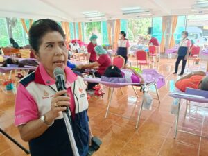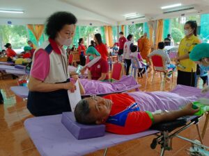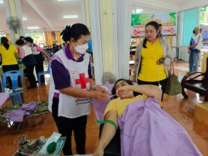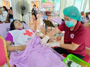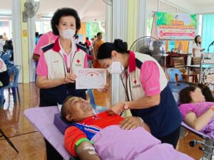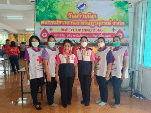 วันที่ 31 มกราคม 2566 นางละมัย เจริญโสภา นายกเหล่ากาชาดจังหวัดตรัง มอบหมายนางมินตรา อรทัย รองนายกเหล่ากาชาดจังหวัดตรัง พร้อมด้วยคณะกรรมการเหล่ากาชาด สมาชิก เจ้าหน้าที่ และจิตอาสาสภากาชาดไทย ร่วมกับธนาคารเลือดโรงพยาบาลตรัง ออกหน่วยรับบริจาคโลหิต ดวงตา และอวัยวะ ณ วัดไร่พรุ อำเภอเมืองตรัง จังหวัดตรัง โดยมี พระครูสมุห์จำเลือง ฐิตเมโธ เจ้าอาวาสวัดไร่พรุ เจ้าคณะตำบลนาโยงใต้ ได้ร่วมบริจาคโลหิตครั้งนี้ด้วยสำหรับวันนี้ มีผู้บริจาคทั้งหมด 75 ราย ได้โลหิต 53 ยูนิต คิดเป็นปริมาณ 21,200 ซีซี. มีผู้แสดงความจำนงบริจาคดวงตา จำนวน 15 ราย และผู้แสดงความจำนงบริจาคอวัยวะ 15 ราย มีผู้รับเข็มรับที่ระลึกบริจาคโลหิต 7 ครั้ง 2 ราย รับเข็มที่ระลึกบริจาคโลหิต 24 ครั้ง 1 ราย พร้อมมอบหน้ากากอนามัย 53 ชิ้น