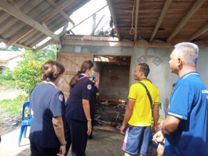 วันที่ 1 กุมภาพันธ์ 2566 นางละมัย เจริญโสภา นายกเหล่ากาชาดจังหวัดตรัง มอบหมายนางลักษณาพร อนันต์วรปัญญา รองนายกเหล่ากาชาดจังหวัดตรัง ,คณะกรรมการเหล่ากาชาด สมาชิกและเจ้าหน้าที่เหล่ากาชาดจังหวัดตรัง พร้อมจิตอาสาสภากาชาดไทย ลงพื้นที่เยี่ยมเยียนให้กำลังใจราษฎรที่ประสบอัคคีภัย ตามโครงการเหล่ากาชาดจังหวัดตรัง ปันน้ำใจผู้ประสบภัย ประจำปีงบประมาณ 2566 ณ บ้านเลขที่ 78 หมู่ที่ 8 ต.หนองบัว อ.รัษฎา จ.ตรัง ซึ่งเป็นบ้านของนายสอน มากเพ็ง เจ้าของบ้าน เกิดเหตุเพลิงไหม้เมื่อวันที่ 30 มกราคม 2566 ในการนี้เหล่ากาชาดจังหวัดตรัง มอบเงินช่วยเหลือ ชุดธารน้ำใจ ชุดหม้อ หมอนและผ้าห่ม เพื่อเป็นการช่วยเหลือในเบื้องต้น