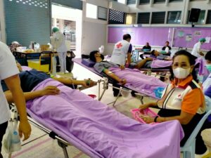 วันที่ 2 กุมภาพันธ์ 2566 นางละมัย เจริญโสภา นายกเหล่ากาชาดจังหวัดตรัง มอบหมายนางมินตรา อรทัย รองนายกเหล่ากาชาดจังหวัดตรัง พร้อมด้วยคณะกรรมการเหล่ากาชาด สมาชิก เจ้าหน้าที่ และจิตอาสาสภากาชาดไทย ร่วมกับธนาคารเลือดโรงพยาบาลตรัง ออกหน่วยรับบริจาคโลหิต ดวงตา และอวัยวะ ณ วิทยาลัยการอาชีพตรัง จังหวัดตรัง มีผู้บริจาคทั้งหมด 80 ราย ได้โลหิต 66 ยูนิต คิดเป็นปริมาณ 26,400 ซีซี. มีผู้แสดงความจำนงบริจาคดวงตา จำนวน 65 ราย และผู้แสดงความจำนงบริจาคอวัยวะ 65 ราย พร้อมมอบหน้ากากอนามัย 66 ชิ้น