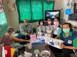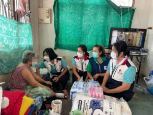 วันที่ 22 กุมภาพันธ์ 2565 นางละมัย เจริญโสภา นายกเหล่ากาชาดจังหวัดตรัง มอบหมายให้นางลักษณาพร อนันต์วรปัญญา รองนายกเหล่ากาชาดจังหวัดตรัง พร้อมด้วยกรรมการ ลงพื้นที่เยี่ยมให้กำลังใจผู้ป่วย ตามโครงการเหล่ากาชาดจังหวัดตรังห่วงใย ใส่ใจผู้ด้อยโอกาส ประจำปีงบประมาณ พ.ศ.2566 ราย นางนิดน้อย แซ่ตั้ง อายุ 62 ปี บ้านเลขที่ 113/4 หมู่ที่ 2 ตำบลโคกหล่อ อำเภอเมืองตรัง จังหวัดตรัง ซึ่งเป็นผู้พิการทางการได้ยิน เป็นโรคหัวใจ และโดนตัดขาเนื่องจากโรคเบาหวาน ในการนี้ เหล่ากาชาดจังหวัดตรังได้มอบผ้าอ้อมสำเร็จรูป และแผ่นรองซับ เพื่อช่วยเหลือเบื้องต้น