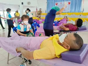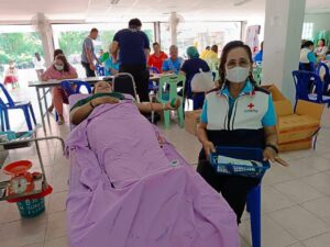 วันที่ 24 กุมภาพันธ์ 2566 นางละมัย เจริญโสภา นายกเหล่ากาชาดจังหวัดตรัง มอบหมายนางมินตรา อรทัย รองนายกเหล่ากาชาดจังหวัดตรัง พร้อมด้วยคณะกรรมการเหล่ากาชาด สมาชิก เจ้าหน้าที่ และจิตอาสาสภากาชาดไทย ร่วมกับธนาคารเลือดโรงพยาบาลตรัง ออกหน่วยรับบริจาคโลหิต ดวงตา และอวัยวะ ณ ศาลาประชาคม อำเภอห้วยยอด จังหวัดตรัง มีผู้บริจาคทั้งหมด 173 ราย ได้โลหิต 134 ยูนิต คิดเป็นปริมาณ 53,600 ซีซี. มีผู้แสดงความจำนงบริจาคดวงตา จำนวน 21 ราย และผู้แสดงความจำนงบริจาคอวัยวะ 21 ราย มีผู้รับเข็มรับที่ระลึกบริจาคโลหิต 7 ครั้ง 11 ราย , 16 ครั้ง 10 ราย , 24 ครั้ง 1 ราย , 72 ครั้ง 1 ราย และ 84 ครั้ง 1 ราย พร้อมมอบผ้าขนหนู 134 ชิ้น