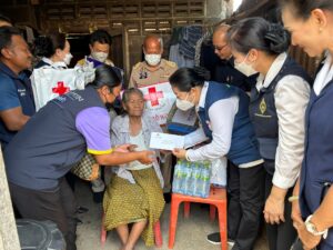 โดยเหล่ากาชาดจังหวัดบุรีรัมย์ ได้มอบชุดอุปโภค-บริโภค รายละ 1 ชุด มอบเงินช่วยเหลือรายละ จำนวนเงิน 2,000 บาท เพื่อถวายเป็นพระกุศลแด่สมเด็จพระเจ้าลูกเธอ เจ้าฟ้าพัชรกิติยาภา นเรนทิราเทพยวดี กรมหลวงราช สาริณีสิริพัชร มหาวัชรราชธิดา