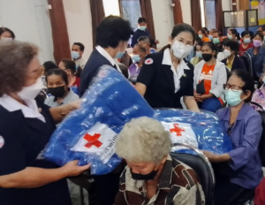 วันที่ 12 มกราคม 2566 นางณัชชา มีจันทร์ นายกเหล่ากาชาดจังหวัดแพร่ มอบหมายให้ นายปานศร ภมรคนธ์ นายกกิ่งกาชาดอำเภอวังชิ้น พร้อมด้วยสมาชิกกิ่งกาชาดอำเภอวังชิ้น กำนัน ผู้ใหญ่บ้าน ในพื้นที่ตำบลนาพูน ร่วมกันมอบเครื่องกันหนาว จำนวน 125 ผืน ให้กับประชาชนผู้ประสบภัยหนาวในพื้นที่ ณ องค์การบริหารส่วนตำบลนาพูน ตำบลนาพูน อำเภอวังชิ้น จังหวัดแพร่