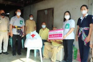 วันที่ 25 มีนาคม 2566 นายวันชัย จันทร์พร ผู้ว่าราชการจังหวัดนครพนม/ที่ปรึกษาคณะกรรมการเหล่ากาชาดจังหวัดนครพนม นำหัวหน้าส่วนราชการจังหวัด พร้อมด้วย นางสงวน จันทร์พร นายกเหล่ากาชาดจังหวัดนครพนม ลงพื้นที่เยี่ยมครัวเรือนยากจน ตามโครงการขจัดความยากจนและพัฒนาคนทุกช่วงวัยอย่างยั่งยืน ตามหลักปรัชญาของเศรษฐกิจพอเพียง “นครพนมสร้างสังคมอุดมสุข ทุกช่วงวัยอย่างยั่งยืน ประจำปีงบประมาณ 2566” เพื่อรับทราบปัญหาและความต้องการและพิจารณาให้ความช่วยเหลือตามอำนาจหน้าที่ แก่นาย รัตน์ แก้วปิลา อายุ 82 ปี บ้านเลขที่ 50 หมู่ที่ 4 บ้านเหล่า ตำบลนาคำ อำเภอศรีสงคราม จังหวัดนครพนม ไม่ได้ประกอบอาชีพ มีเพียงรายได้จากเบี้ยผู้สูงอายุเดือนละ 800 บาท ป่วยเป็นโรคปอดติดเชื้อและลิ้นหัวใจโต อาศัยอยู่กับบุตรชายไม่สามารถทำงานหนักได้เนื่องจากมีปัญหาสุขภาพ ในโอกาสนี้เหล่ากาชาดจังหวัดนครพนม มอบเงินช่วยเหลือ 2,000 บาท พร้อมเครื่องอุปโภคบริโภคและของใช้จำเป็นในการดำรงชีพ มูลค่า 2,000 บาท