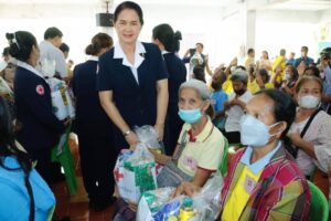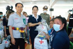 วันที่ 25 มีนาคม 2566 นางสงวน จันทร์พร นายกเหล่ากาชาดจังหวัดนครพนม พร้อมด้วยคณะกรรมการและสมาชิกเหล่ากาชาดจังหวัดนครพนม ร่วมโครงการจังหวัดเคลื่อนที่แบบบูรณาการ “หน่วยบำบัดทุกข์ บำรุงสุข สร้างรอยยิ้มให้กับประชาชนจังหวัดนครพนม” ประจำปีงบประมาณ 2566 ณ โรงเรียนนาคำราษฎร์รังสรรค์ หมู่ที่ 5 บ้านนาคำ ตำบลนาคำ อำเภอศรีสงคราม จังหวัดนครพนม โดยมี นายวันชัย จันทร์พร ผู้ว่าราชการจังหวัดนครพนม เป็นประธานในพิธีเปิดโครงการ โดยนำ ส่วนราชการ ภาครัฐ ภาคเอกชน ลงพื้นที่ให้บริการประชาชนในพื้นที่ได้มีโอกาสเข้าถึงการบริการของภาครัฐและเอกชน พร้อมทั้งเปิดโอกาสให้ชาวบ้านในพื้นที่ได้นำผลิตภัณฑ์ และพืชผัก ของท้องถิ่นในชุมชนมาจำหน่ายเพื่อสร้างรายได้ และในโอกาสนี้เหล่ากาชาดจังหวัดนครพนม ได้มอบถุงยังชีพเพื่อบรรเทาความเดือดร้อนในเบื้องต้น ให้แก่ผู้ยากไร้ ผู้ด้อยโอกาส ในพื้นที่อำเภอนาทม จำนวน 50 ชุด