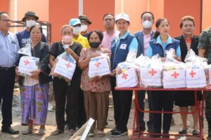 วันที่ 28 มีนาคม 2566 นายวันชัย จันทร์พร ผู้ว่าราชการจังหวัดนครพนม ประธานที่ปรึกษาคณะกรรมการเหล่ากาชาดจังหวัดนครพนม พร้อมด้วยนางสงวน จันทร์พร นายกเหล่ากาชาดจังหวัดนครพนม นางศุทธิกานต์ วงศ์ถิตจิรกาล รองนายกเหล่ากาชาดจังหวัดนครพนม เร่งลงพื้นที่บ้านนาหัวบ่อ หมู่ที่ 7 ตำบลอาจสามารถ อำเภอเมืองนครพนม จังหวัดนครพนม เร่งส่งมอบถุงยังชีพเครื่องอุปโภคบริโภค ให้ความช่วยเหลือกับประชาชนผู้เดือดร้อน จากเหตุพายุฤดูร้อน พัดบ้านเรือนเสียหาย ที่ประสบเหตุเมื่อวันจันทร์ที่ 27 มีนาคม 2566 เวลา 16.45 น. ในเขตพื้นที่ ตำบลอาจสามารถ อำเภอเมืองนครพนม จังหวัดนครพนม มีประชาชนได้รับความเดือดร้อน จำนวน 24 ครัวเรือน