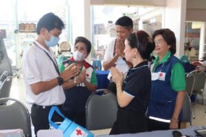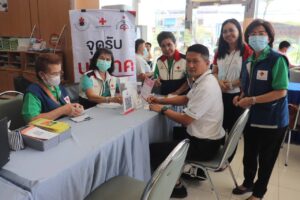วันที่ 29 มีนาคม 2566 นางละมัย เจริญโสภา นายกเหล่ากาชาดจังหวัดตรัง มอบหมายนางวาลินี ธนทวี หัวหน้าพันธกิจที่ 3 พร้อมด้วยคณะกรรมการเหล่ากาชาด สมาชิก เจ้าหน้าที่ และจิตอาสาสภากาชาดไทย ร่วมกับธนาคารเลือดโรงพยาบาลตรัง ออกหน่วยรับบริจาคโลหิต ดวงตา และอวัยวะ ณ บ.โตโยต้าเมืองตรัง สนง.ใหญ่ ถนนห้วยยอด อำเภอเมืองตรัง มีผู้บริจาคทั้งหมด 64 ราย ได้โลหิต 53 ยูนิต คิดเป็นปริมาณ 21,200 ซีซี. มีผู้แสดงความจำนงบริจาคดวงตา จำนวน 20 ราย และผู้แสดงความจำนงบริจาคอวัยวะ 20 ราย มีผู้รับเข็มรับที่ระลึกบริจาคโลหิต 7 ครั้ง 5 ราย และ16 ครั้ง 4 ราย พร้อมมอบกระเป๋า 53 ใบ