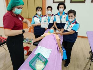 วันที่ 24 มีนาคม 2566 นางละมัย เจริญโสภา นายกเหล่ากาชาดจังหวัดตรัง มอบหมายนางวาลินี ธนทวี หัวหน้าพันธกิจที่ 3 พร้อมด้วยคณะกรรมการเหล่ากาชาด สมาชิก เจ้าหน้าที่ และจิตอาสาสภากาชาดไทย ร่วมกับธนาคารเลือดโรงพยาบาลตรัง ออกหน่วยรับบริจาคโลหิต ดวงตา และอวัยวะ ณ มูลนิธิกุศลสถานตรัง อำเภอเมืองตรัง จังหวัดตรัง โดยมีนายจักรพงษ์ รัชนีกุล นายอำเภอเมืองตรัง นำบุคคลากรร่วมบริจาคโลหิตด้วยสำหรับวันนี้ มีผู้บริจาคทั้งหมด 202 ราย ได้โลหิต 150 ยูนิต คิดเป็นปริมาณ 60,000 ซีซี. มีผู้แสดงความจำนงบริจาคดวงตา จำนวน 20 ราย และผู้แสดงความจำนงบริจาคอวัยวะ 19 ราย มีผู้รับเข็มรับที่ระลึกบริจาคโลหิต 7 ครั้ง 12 ราย และ16 ครั้ง 2 ราย พร้อมมอบกระเป๋า 150 ใบ