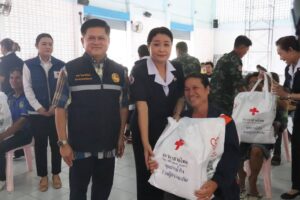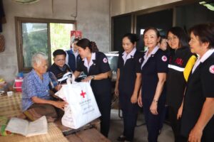 วันที่ 29 เมษายน 2566 นายนฤชา โฆษาศิวิไลซ์ ผู้ว่าราชการจังหวัดบึงกาฬ/ประธานที่ปรึกษาเหล่ากาชาดจังหวัดบึงกาฬ นางวาทิณี โฆษาศิวิไลซ์ นายกเหล่ากาชาดจังหวัดบึงกาฬ พร้อมด้วยกรรมการและสมาชิกเหล่ากาชาดจังหวัดบึงกาฬ กรรมการและสมาชิกกาชาดอำเภอปากคาด ร่วมด้วย ป้องกันและบรรเทาสาธารณภัยจังหวัดบึงกาฬ พัฒนาสังคมและความมั่นคงของมนุษย์จังหวัดบึงกาฬ อำเภอปากคาด ผู้นำชุมชนอำเภอปากคาด รับมอบถุงธารน้ำใจ จากสถานีกาชาดที่ 9 จังหวัดอุดรธานี สำนักบรรเทาทุกข์และประชานามัยพิทักษ์ สภากาชาดไทย จำนวน 226 ชุด และส่งมอบถุงธารน้ำใจแก่ผู้ประสบวาตภัย (ในพื้นที่ตำบลปากคาด ตำบลนากั้ง ตำบลนาดง ตำบลโนนศิลา และตำบลหนองยอง) ณ หอประชุมอำเภอปากคาด จังหวัดบึงกาฬ พร้อมกันนี้ได้ลงพื้นที่เยี่ยมบ้านให้กำลังใจผู้ประสบวาตภัย จำนวน 3 ราย