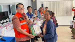 วันอาทิตย์ที่ 23 เมษายน 2566 นายวันชัย จันทร์พร ผู้ว่าราชการจังหวัดนครพนม ในฐานะประธาน ที่ปรึกษา เหล่ากาชาดจังหวัดนครพนม พร้อมด้วย นางสงวน จันทร์พร นายกเหล่ากาชาดจังหวัดนครพนม มอบหมายให้ นายจิระศักดิ์ สีหามาตย์ รองผู้ว่าราชการจังหวัดนครพนม นาง พาณี พิมพนิตย์ กรรมการเหล่ากาชาดจังหวัดนครพนม นำถุงยังชีพรุดลงพื้น ให้ความช่วยเหลือและให้กำลังใจกับประชาชนผู้เดือดร้อน จากเหตุพายุฤดูร้อน พัดบ้านเรือนเสียหาย ที่ประสบเหตุเมื่อวันเสาร์ที่ 22 เมษายน 2566 เวลาประมาณ 18.30 น. ในเขตพื้นที่ตำบลคำเตย ตำบลบ้านผึ้ง ตำบลคำเตย อำเภอเภอเมือง จังหวัดนครพนม มีประชาชนได้รับความเดือดร้อน จำนวน 57 ครัวเรือน