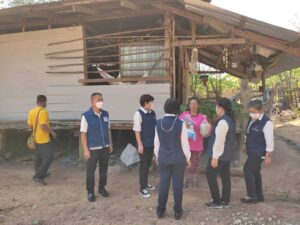 วันที่ 29 เมษายน 2566 นายสมชาย ไตรทิพย์ชาติสกุล นายอำเภอแม่สอด นายกกิ่งกาชาดอำเภอแม่สอด มอบหมายให้สมาชิกกิ่งกาชาดอำเภอแม่สอด ผู้ใหญ่บ้าน ผู้ช่วยผู้ใหญ่บ้าน ชรบ. ลงพื้นที่เยี่ยมประชาชนและให้การช่วยเหลือแก่ผู้ยากไร้ ผู้พิการ ผู้สูงอายุ ผู้ป่วยติดเตียง และผู้ด้อยโอกาส พร้อมมอบเครื่องอุปโภค บริโภค ข้าวสาร หน้ากากอนามัย ผ้าห่ม เสื้อกันหนาว เจลแอลกอฮอล์ และยาสามัญประจำบ้าน จำนวน 1 ราย ได้แก่