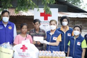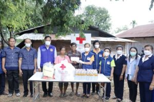 วันที่ 26 ตุลาคม 2565 นายชาญชัย คงทัน รองผู้ว่าราชการจังหวัดนครพนม รักษาการแทนนายกเหล่ากาชาดจังหวัดนครพนม. มอบหมายให้ นางศุทธิกานต์ วงศ์สถิตจิรกาล รองนายกเหล่ากาชาดจังหวัดนครพนม พร้อมด้วยกรรมการและสมาชิกเหล่ากาชาดจังหวัดนครพนม บูรณาการการทำงานร่วมกับอำเภอนาทม ลงพื้นที่เยี่ยมและมอบเงินช่วยเหลือราษฎรผู้ยากไร้ รายที่ 8 ตามกิจกรรม “วันกาชาด บรรเทาทุกข์ บำรุงสุข ประชา ” ประจำปีปีงบประมาณ พ.ศ.2566 แก่ นาง พิน บุตรดี อายุ 53 ปี อยู่บ้านเลขที่ 149 หมู่ทึ่ 10 ตำบลหนองซน อำเภอนาทม จังหวัดนครพนม อาชีพรับจ้างทั่วไป อาศัยอยู่กับสามี ไม่มีที่ดินเป็นของตัวเอง อาศัยปลูกสร้างบ้านในดินของญาติ เหล่ากาชาดจังหวัดนครพนม มอบเงินช่วยเหลือ จำนวน 2,000 บาท พร้อมเครื่องอุปโภคบริโภค มูลค่า 2,000 บาท