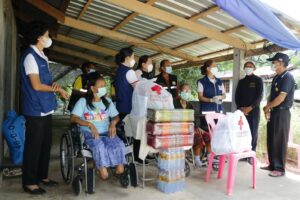 วันที่ 25 ตุลาคม 2565 นายชาญชัย คงทัน รองผู้ว่าราชการจังหวัดนครพนม รักษาการแทนนายกเหล่ากาชาดจังหวัดนครพนม. มอบหมายให้ นางศุทธิกานต์ วงศ์สถิตจิรกาล รองนายกเหล่ากาชาดจังหวัดนครพนม พร้อมด้วยกรรมการและสมาชิกเหล่ากาชาดจังหวัดนครพนม บูรณาการการทำงานร่วมกับอำเภอนาทม ลงพื้นที่เยี่ยมและมอบเงินช่วยเหลือราษฎรผู้ยากไร้ รายที่ 6 ตามกิจกรรม “วันกาชาด บรรเทาทุกข์ บำรุงสุข ประชา ” ประจำปีปีงบประมาณ พ.ศ.2566 แก่ นายธีระวัฒน์ บุญ เทียม อายุ 68 ปี อยู่บ้านเลขที่ 57 หมู่ทึ่ 15 ตำบลไชยบุรี อำเภอท่าอุเทน จังหวัดนครพนม ผู้ยากไร้ ผ่าตัดลำไส้ ต้องอุจจาระผ่านช่องท้อง อาศัยอยู่เพียงลำพัง มีพี่สาวและน้องชายที่มีภรรยาป่วยโรคเบาหวานต้องตัดข้อเท้าทั้ง 2 ข้าง ดูแล เหล่ากาชาดจังหวัดนครพนม มอบเงินช่วยเหลือ จำนวน 2,000 บาท พร้อมเครื่องอุปโภคบริโภค มูลค่า 4,000 บาท