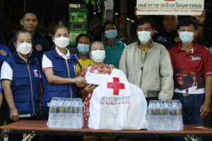 วันที่ 19 ตุลาคม 2565 นายชาญชัย คงทัน รองผู้ว่าราชการจังหวัดนครพนม รักษาการแทนนายกเหล่ากาชาดจังหวัดนครพนม มอบหมายให้นางศุทธิกานต์ วงศ์สถิตจิรกาล รองนายกเหล่ากาชาดจังหวัดนครพนม พร้อมด้วยกรรมการและสมาชิกเหล่ากาชาดจังหวัดนครพนม บูรณาการการทำงานร่วมกับอำเภอธาตุพนม ลงพื้นที่เยี่ยมและมอบเงินช่วยเหลือราษฎรผู้ยากไร้ รายที่ 3 ตามกิจกรรม “วันกาชาด บรรเทาทุกข์ บำรุงสุข ประชา ” ประจำปีปีงบประมาณ พ.ศ.2566 แก่ นางทองใส นิวงศ์ศา อายุ 68 ปี อาศัยอยู่บ้านเลขที่ 12 หมู่ทึ่ 7 ตำบลโพนบก. อำเภอโพนสวรรค์ จังหวัดนครพนม ผู้ยากไร้และเป็นผู้พิการทางการได้ยิน. อาศัยอยู่กับสามี 2 คน เหล่ากาชาดจังหวัดนครพนม มอบเงินช่วยเหลือ จำนวน 2,000 บาท พร้อมเครื่องอุปโภคบริโภค มูลค่า 2,000 บาท