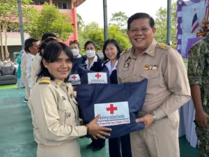 วันที่ 26 เมษายน 2566 นางละมัย เจริญโสภา นายกเหล่ากาชาดจังหวัดตรัง มอบหมายให้นางลักษณาพร อนันต์วรปัญญา รองนายกเหล่ากาชาดจังหวัดตรัง พร้อมด้วยคณะกรรมการ และสมาชิกเหล่ากาชาดจังหวัดตรัง ร่วมโครงการ “หน่วยบำบัดทุกข์ บำรุงสุข สร้างรอยยิ้มรให้ประชาชน” จังหวัดตรัง และร่วมออกหน่วยแพทย์เคลื่อนที่ พอ.สว. ออกให้บริการประชาชน ออกให้บริการประชาชน ณ วิทยาลัยการอาชีพกันตัง ต.กันตังใต้ อ.กันตัง จ.ตรัง โดยมีภูวนัฐ สมใจ รองผู้ว่าราชการจังหวัดตรัง เป็นประธานในพิธี ในการนี้ เหล่ากาชาดจังหวัดตรัง มอบเครื่องอุปโภคบริโภคให้ผู้สูงอายุ ผู้พิการ และผู้ป่วยติดเตียง จำนวน 100 ชุด มอบแว่นสายตาให้ผู้สูงวัยและผู้ยากไร้จำนวน 157 อัน และมอบนมและขนมให้เด็กในพื้นที่