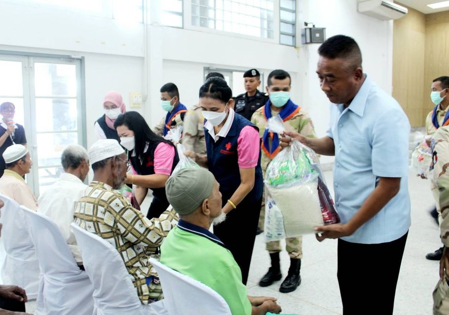 วันที่ 4 เมษายน 2566 นางสิริวิมล พงษ์อักษร นายกเหล่ากาชาดจังหวัดนราธิวาส มอบหมายนางสุบิน จริตงาม รองนายกเหล่ากาชาดจังหวัดนราธิวาส นางโศภิษฐ์ นวลน้อย รองนายกเหล่ากาชาดจังหวัดนราธิวาส พร้อมด้วยนางจีราพร ปูรียา นายกกิ่งกาชาดอำเภอแว้ง กรรมการเหล่ากาชาดจังหวัดนราธิวาส ลงพื้นที่เยี่ยมกลุ่มเปราะบางช่วงเดือนรอมฎอน พร้อมมอบถุงยังชีพให้กลุ่มเปราะบางผู้ยากไร้ ผู้ด้อยโอกาส ผู้พิการ และผู้สูงอายุ ที่นับถือศาสนาอิสลามในช่วงเดือนรอมฎอน ในพื้นที่อำเภอเเว้ง ณ หอประชุมที่ว่าการอำเภอเเว้ง ตำบลแว้ง อำเภอเเว้ง จังหวัดนราธิวาส โดยมีนายปรีชา นวลน้อย รองผู้ว่าราชการจังหวัดนราธิวาส เป็นประธานในพิธี พร้อมด้วยนายรุสดี ปูรียา นายอำเภอเเว้ง กำนัน ผู้ใหญ่บ้าน ตลอดจนผู้เกี่ยวข้องร่วมลงพื้นที่ในครั้งนี้
