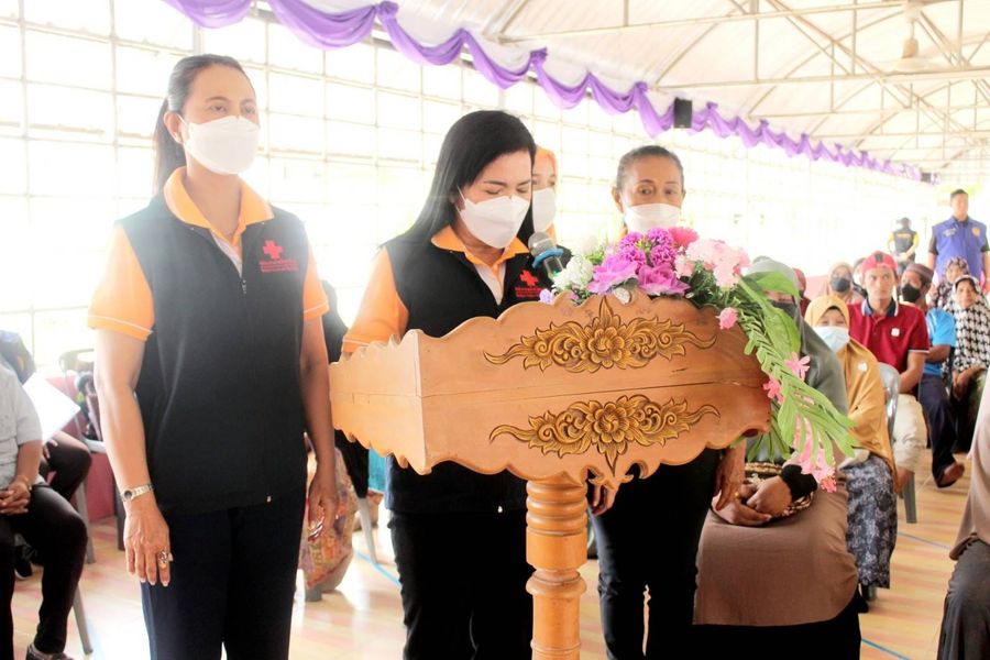 วันที่ 23 มีนาคม 2566 นางสิริวิมล พงษ์อักษร นายกเหล่ากาชาดจังหวัดนราธิวาส มอบหมายนางโศภิษฐ์ นวลน้อย รองนายกเหล่ากาชาดจังหวัดนราธิวาส พร้อมด้วยนางปรียา เกิดก่อ ผู้ช่วยนายกเหล่ากาชาดจังหวัดนราธิวาส นางสิริกุล ศิริวัลลภ ผู้ช่วยนายกเหล่ากาชาดจังหวัดนราธิวาส กรรมการ และสมาชิกเหล่ากาชาดจังหวัดนราธิวาส ลงพื้นที่เยี่ยมกลุ่มเปราะบางช่วงเดือนรอมฎอน พร้อมมอบถุงยังชีพให้กลุ่มเปราะบางผู้ยากไร้ ผู้ด้อยโอกาส ผู้พิการ และผู้สูงอายุ ที่นับถือศาสนาอิสลามในช่วงเดือนรอมฎอน ในพื้นที่อำเภอเมืองนราธิวาส ณ อาคารอเนกประสงค์ โรงเรียนบ้านทอน ตำบลโคกเคียน อำเภอเมืองนราธิวาส จังหวัดนราธิวาส โดยมีนายสนั่น พงษ์อักษร ผู้ว่าราชการจังหวัดนราธิวาส เป็นประธานในพิธี พร้อมด้วยว่าที่ ร.ต.จิรัสย์ ศิริวัลลภ นายอำเภอเมืองนราธิวาส กำนัน ผู้ใหญ่บ้าน ตลอดจนผู้เกี่ยวข้องร่วมลงพื้นที่ในครั้งนี้