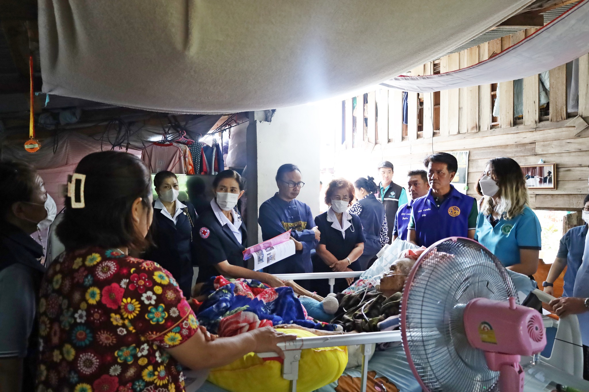 วันที่ 13 กันยายน พ.ศ.2566 นางณัชชา มีจันทร์ นายกเหล่ากาชาดจังหวัดแพร่ ลงพื้นที่ออกเยี่ยมและให้กำลังใจผู้ป่วยใน โครงการ มอบรักปันสุข เพื่อครอบครัวผู้ยากไร้ ผู้ป่วยติดเตียง ผู้ด้อยโอกาส และผู้พิการมีฐานะยากจนและเป็นคนดีของสังคม เหล่ากาชาดจังหวัดแพร่ ประจำปี 2566 ในพื้นที่อำเภอเมืองแพร่ ได้แก่ นางจำปา ศรีแดง บ้านเลขที่ 103/1 หมู่ที่ 1 บ้านทุ่งกวาว ตำบลทุ่งกวาว อำเภอเมืองแพร่ จังหวัดแพร่ โดยมี นายสมศักดิ์ สุขประเสริฐ นายอำเภอเมืองแพร่ พร้อมด้วยคณะกรรมการและสมาชิกเหล่ากาชาดจังหวัดแพร่ นางจารุณีย์ สุขประเสริฐ ประธานแม่บ้านมหาดไทยอำเภอเมืองแพร่ สมาชิกแม่บ้านมหาดไทยจังหวัดแพร่ เจ้าหน้าที่สาธารณสุขจังหวัดแพร่ เจ้าหน้าที่พัฒนาสังคมและความมั่นคงของมนุษย์จังหวัดแพร่ ผู้นำท้องถิ่น ผู้นำท้องที่ ร่วมด้วย ทั้งนี้ เหล่ากาชาดจังหวัดแพร่ มอบเงินจำนวน 2,000 บาท และ ถุงยังชีพเหล่ากาชาดจังหวัดแพร่ จำนวน 1 ถุง เพื่อเป็นขวัญและกำลังใจในการช่วยเหลือเบื้องต้น