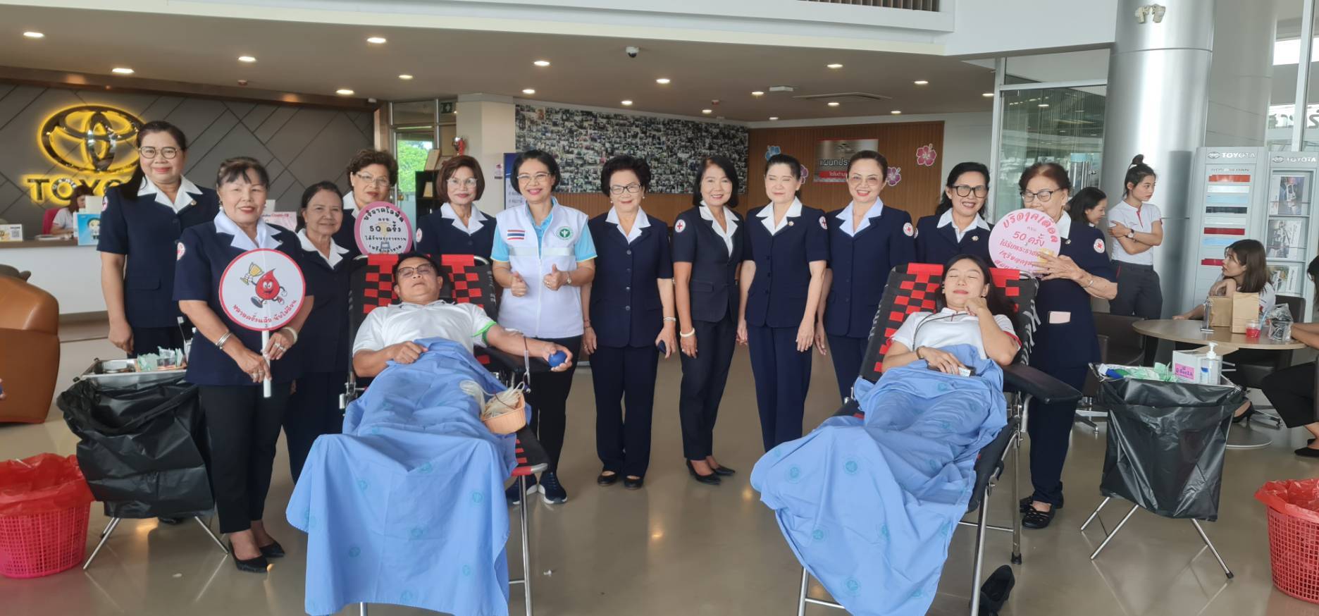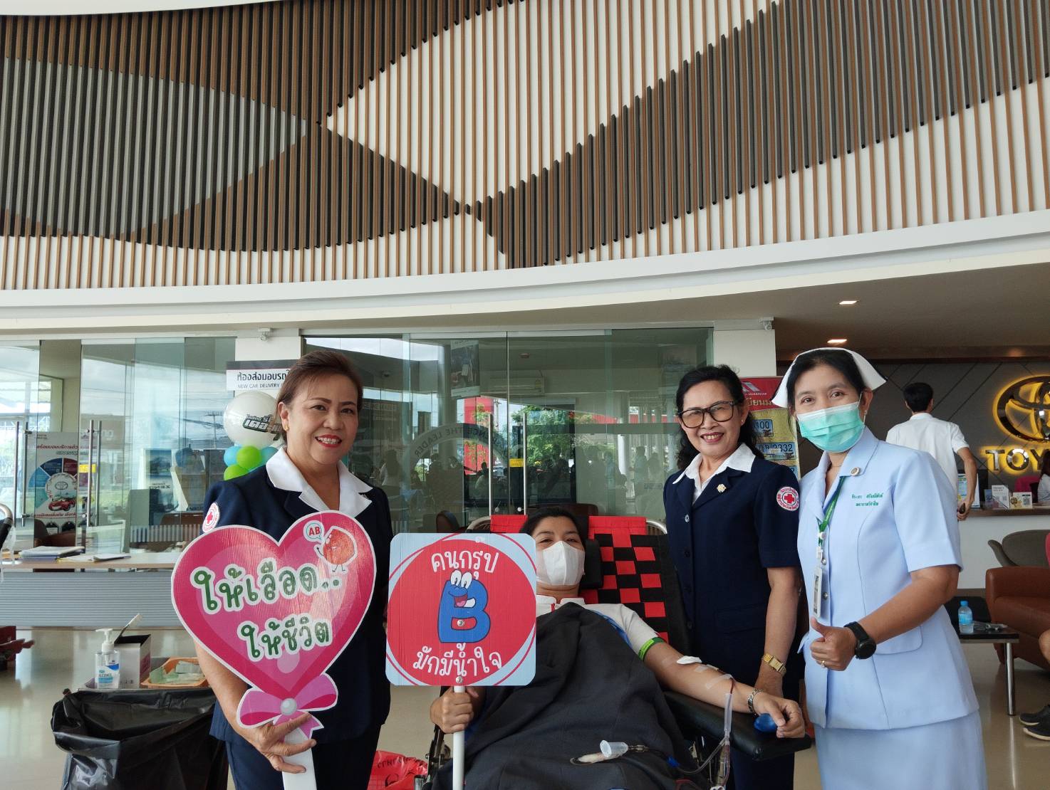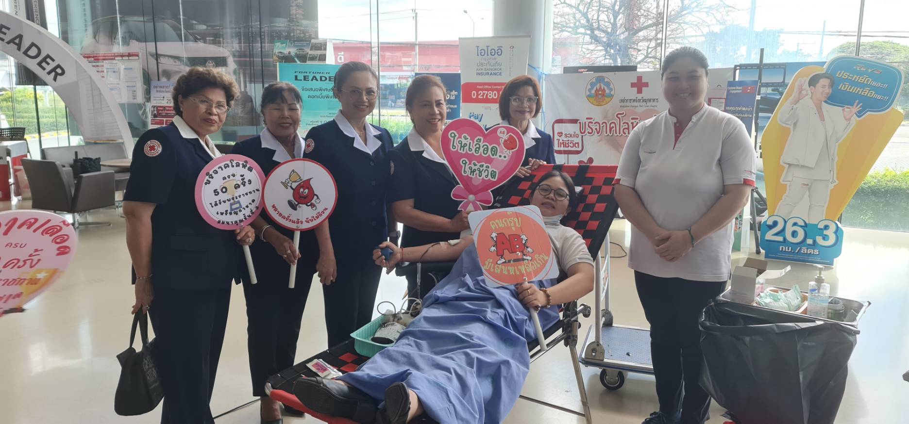 วันที่ 4 ตุลาคม 2566 นางอัญชลี กัลมาพิจิตร นายกเหล่ากาชาดจังหวัดมุกดาหาร มอบหมายให้ นางศรินยา มณีกรรณ์ รองนายกเหล่ากาชาดจังหวัดมุกดาหาร พร้อมด้วยคณะกรรมการเหล่ากาชาดจังหวัดมุกดาหาร และสมาชิกเหล่ากาชาดจังหวัดมุกดาหารร่วมกับโรงพยาบาลมุกดาหาร ออกหน่วยรับบริจาคโลหิต เพิ่มจำนวนครั้ง เพิ่มโลหิต เพิ่มชีวิตซึ่งมียอดการรับบริจาค ดังนี้1. ผู้บริจาคโลหิตทั้งสิ้น 73 ราย คิดเป็น ปริมาณโลหิต 29,900 ซีซี 2. ยอดผู้บริจาคดวงตาทั้งสิ้น จำนวน 4 ราย3. ยอดผู้บริจาคอวัยวะทั้งสิ้น จำนวน 5 รายโดยมี เจ้าหน้าที่/พนักงานบริษัทโตโยต้ามุกดาหาร ร่วมบริจาคโลหิตดังกล่าว ณ บริษัทโตโยต้ามุกดาหาร จังหวัดมุกดาหาร