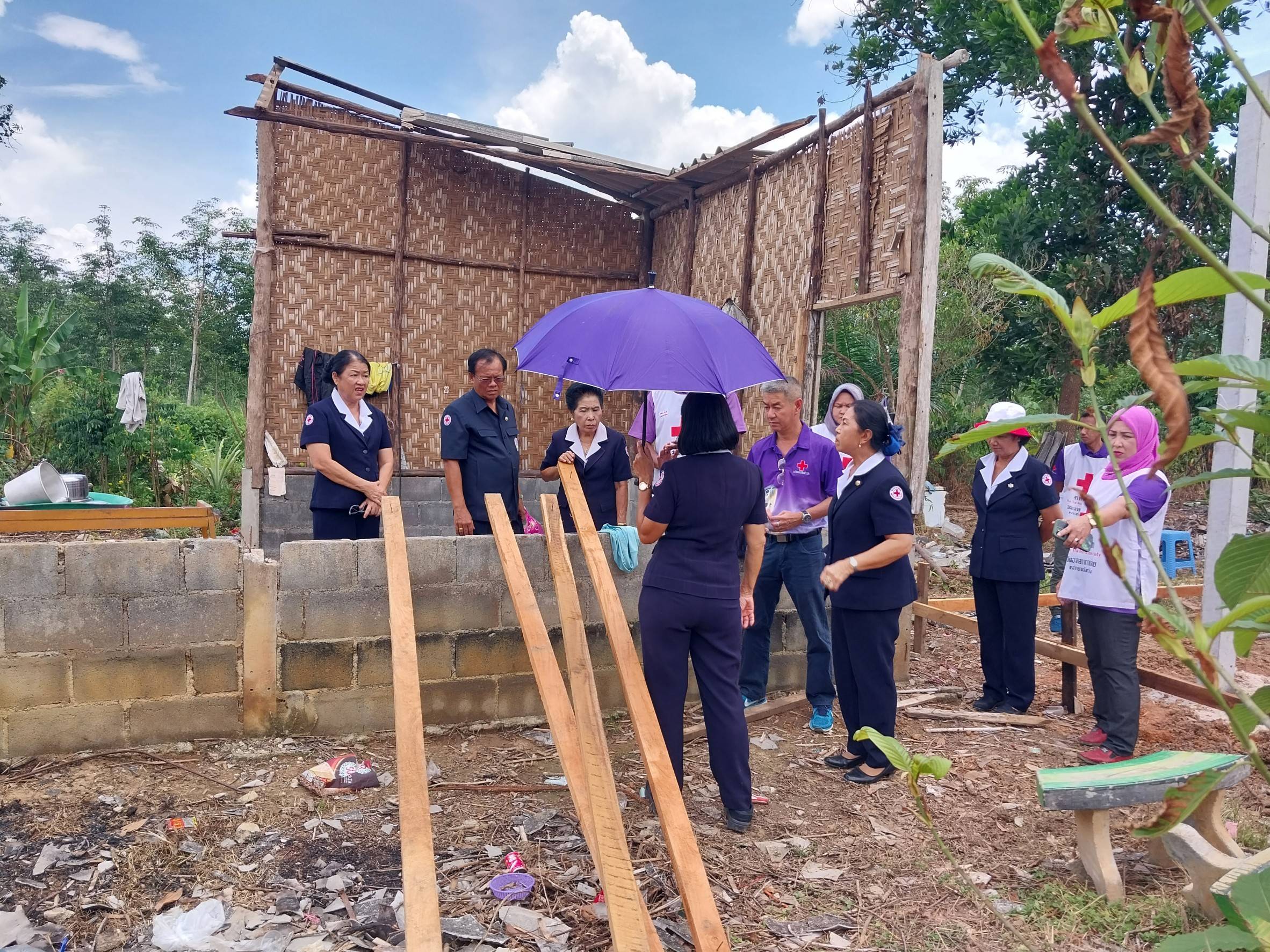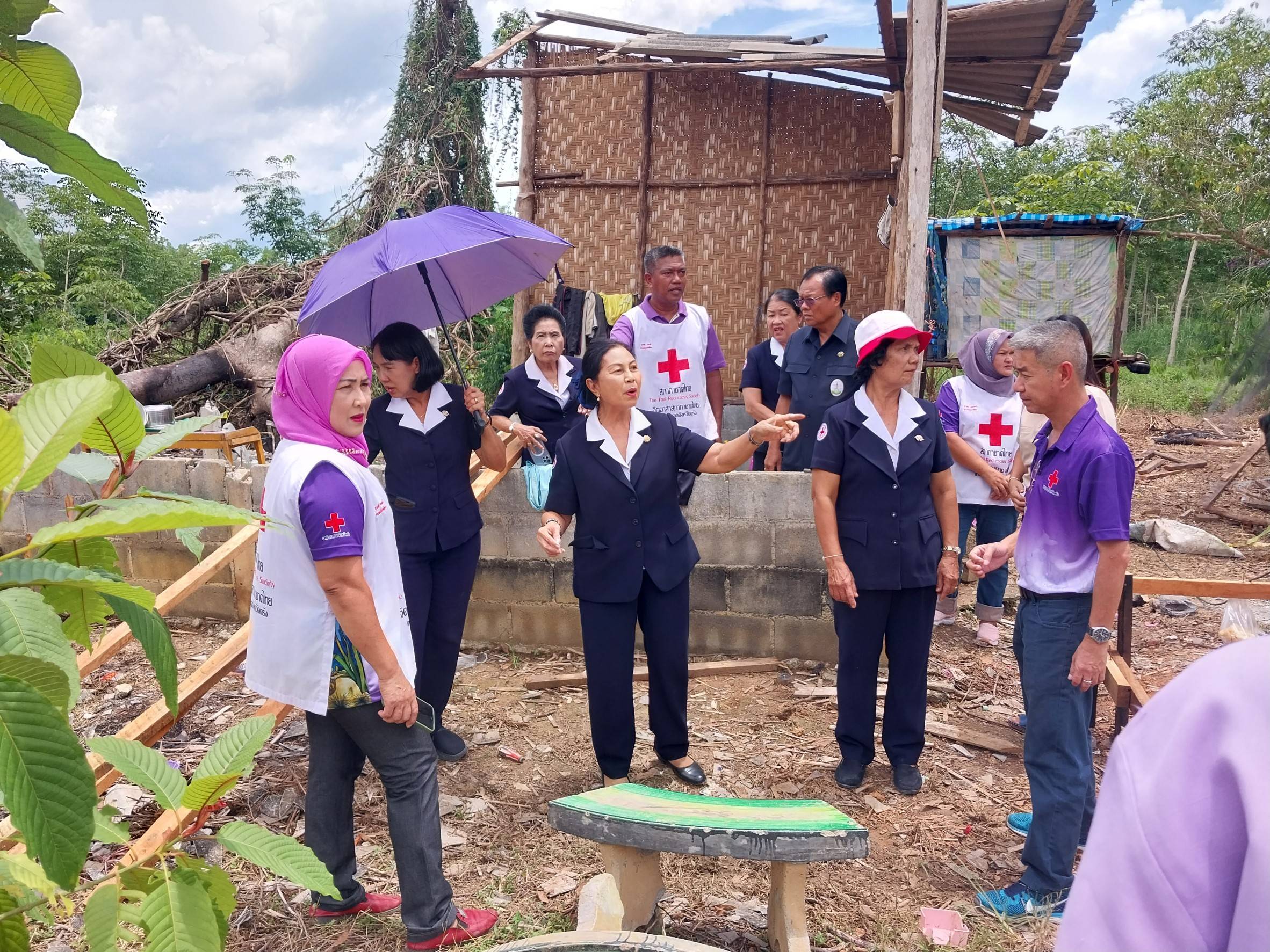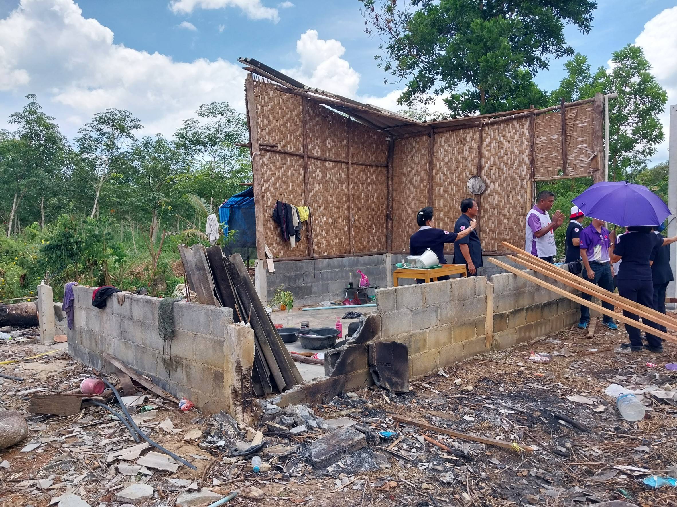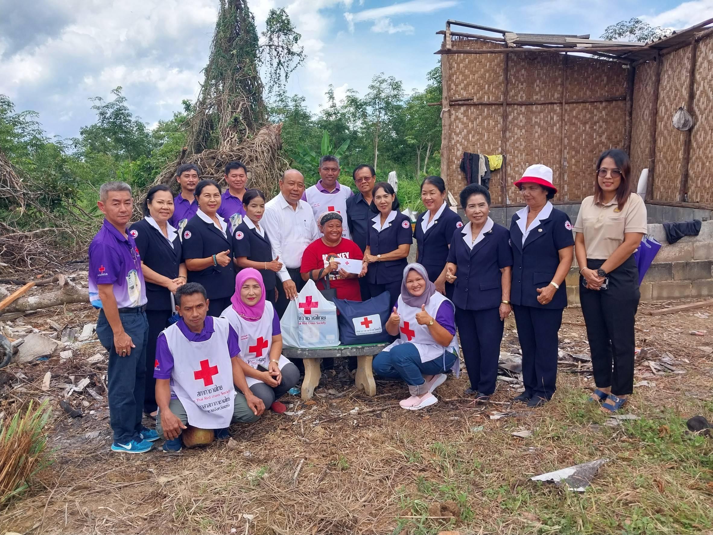 ในการนี้เหล่ากาชาดจังหวัดตรัง มอบชุดธารน้ำใจ หม้อหุงข้าว ชุดหม้อ และเงินช่วยเหลือ เพื่อช่วยเหลือในเบื้องต้น