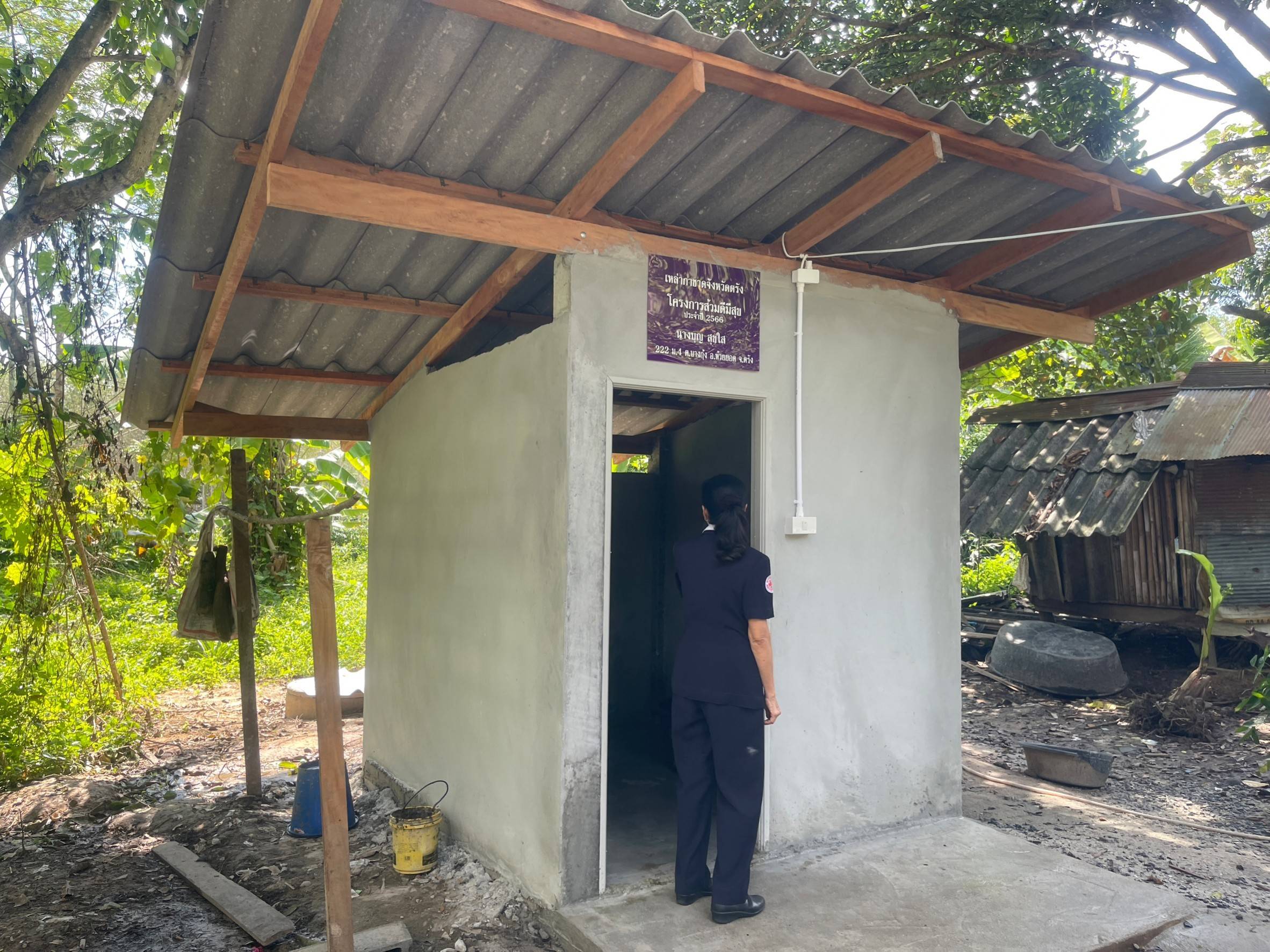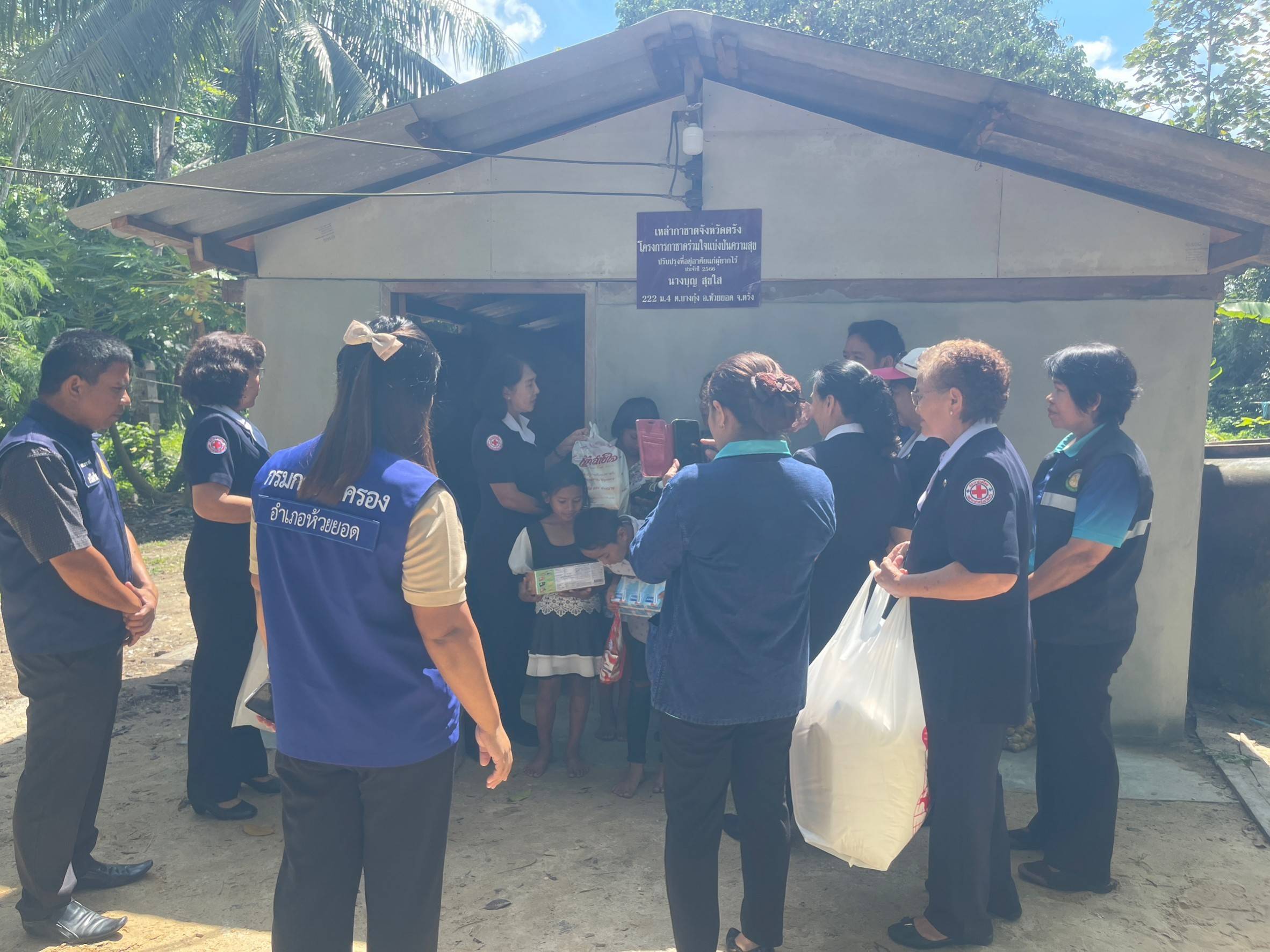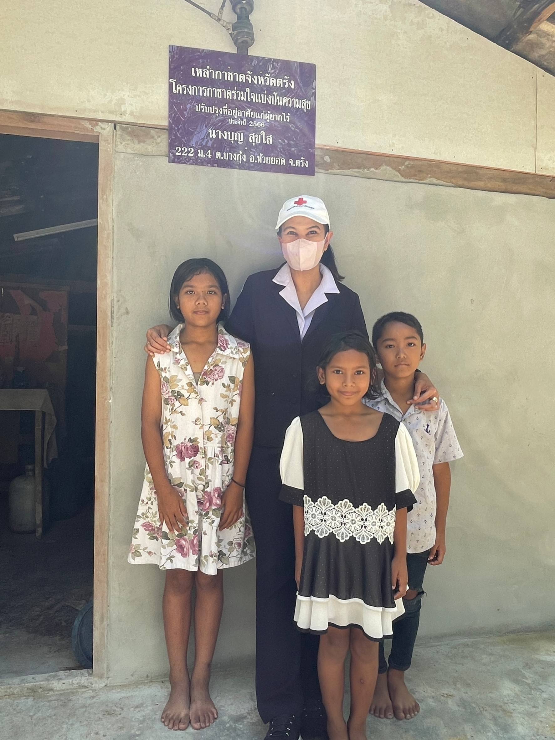 วันที่ 19 กันยายน 2566 นางละมัย เจริญโสภา นายกเหล่ากาชาดจังหวัดตรัง มอบหมายให้นางมินตรา อรทัย รองนายกเหล่ากาชาดจังหวัดตรัง พร้อมด้วยคณะกรรมการ สมาชิกเหล่ากาชาดจังหวัดตรัง ลงพื้นที่มอบส้วม ในโครงการส้วมดีมีสุข ประจำปีงบประมาณ 2566 และมอบบ้านซ่อมแซมปรับปรุงบ้านตามโครงการกาชาดร่วมใจ แบ่งปันความสุข ปรับปรุงที่อยู่อาศัยผู้ยากไร้ ประจำปีงบประมาณ 2566 มอบแก่นางบุญ สุกใส บ้านเลขที่ 222 ม.4 ต.บางกุ้ง อ.ห้วยยอด จ.ตรัง ในการนี้เหล่ากาชาดจังหวัดตรัง มอบถุงยังชีพและเครื่องอุปโภค เพื่อเป็นช่วยเหลือเบื้องต้น