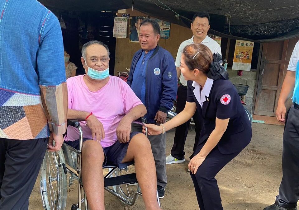 วันที่ 6 ตุลาคม 2566 นางกุสุมาล พงษ์สิทธิถาวร นายกเหล่ากาชาดจังหวัดเชียงใหม่ มอบหมายให้นางศิริลักษณ์ พึ่งเนียม ภริยาปลัดจังหวัดเชียงใหม่ คณะกรรมการเหล่ากาชาดจังหวัดเชียงใหม่ ร่วมกับ กิ่งกาชาดอำเภอจอมทอง ลงพื้นที่เยี่ยมให้กำลังใจผู้ป่วย ราย นายสุนทร สุยะสาม อายุ 65 ปี ลงพื้นที่เยี่ยมให้กำลังใจและมอบรถเข็นวีลแชร์ จำนวน 1 คัน และถุงยังชีพจากกิ่งกาชาดอำเภอจอมทอง จำนวน 1 ชุด ให้แก่ราษฎรรายดังกล่าว ณ บ้านเลขที่ 270 หมู่ 3 ตำบลแม่สอย อำเภอจอมทอง จังหวัดเชียงใหม่