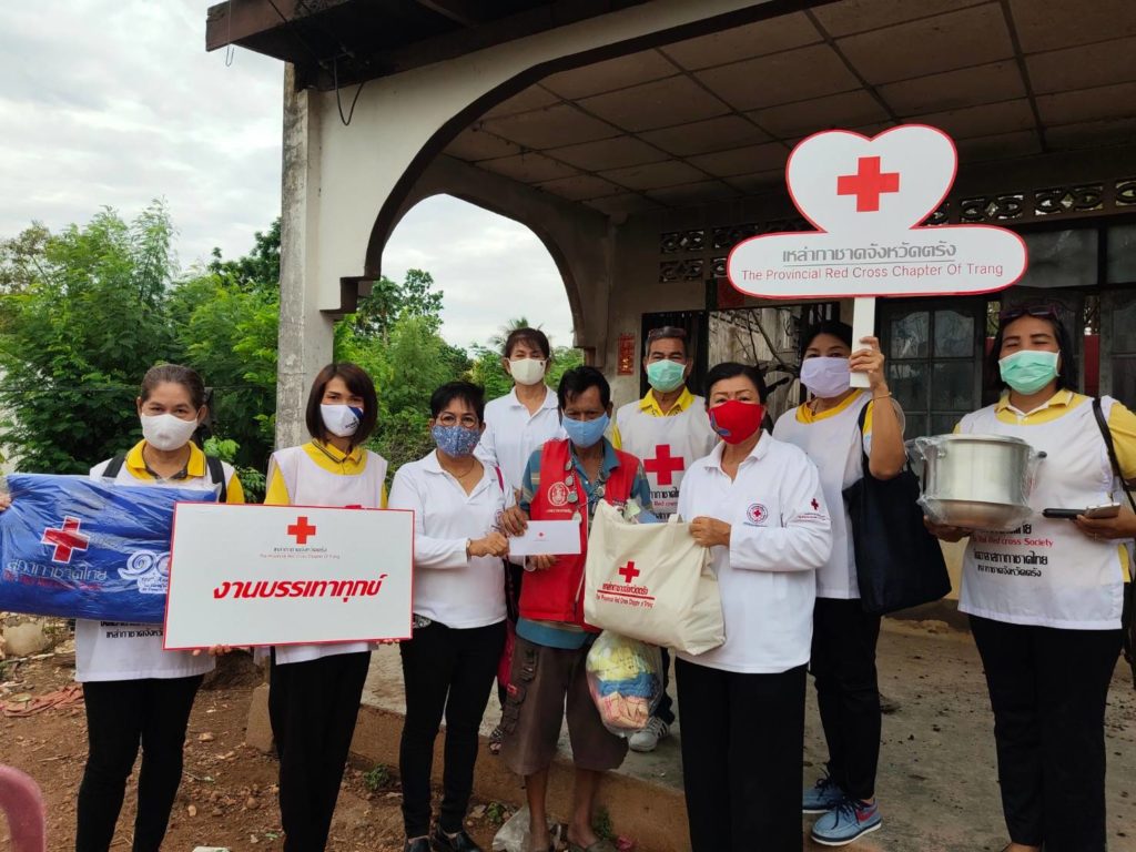 วันที่ 17 เมษายน 2563 นางเอื้อจิตร เจริญทรัพย์ นายกเหล่ากาชาดจังหวัดตรัง มอบหมายคณะกรรมการฯเหล่ากาขาดและจิตอาสาสภากาชาดไทย อำเภอเมืองตรัง ลงพื้นที่ให้ความช่วยเหลือราษฎร กรณี นายวิทยา ชุมด้วง ประสบเหตุอัคคีภัย (เกิดไฟไหม้บ้านเมื่อวันที่ 15 เมษายน 2563 เนื่องจากลูกชายของเจ้าของบ้านซึ่งป่วยจิตเวชได้จุดไฟเผาบ้านตัวเองและทำร้ายร่างกายตัวเอง) ที่บ้านเลขที่ 12 ม.8 ต.โคกหล่อ อ.เมืองตรัง จ.ตรัง เหล่ากาชาดจังหวัดตรังได้มอบเงินช่วยเหลือจำนวน 3,000 บาทและเครื่องอุปโภคบริโภค จำนวน 1 ชุด